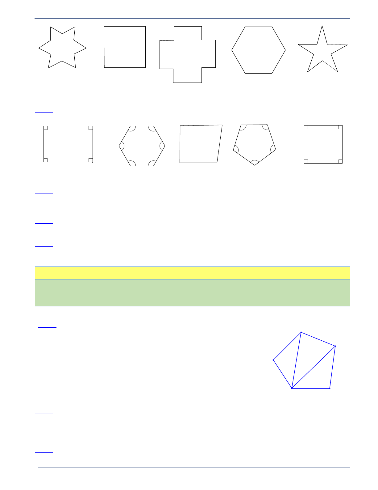 Bài 1. Tìm các đa giác lồi trong hình vẽ và giải thích. A A A E A A F C B C B B C D B D B E C D C a) D d) e) b) c)