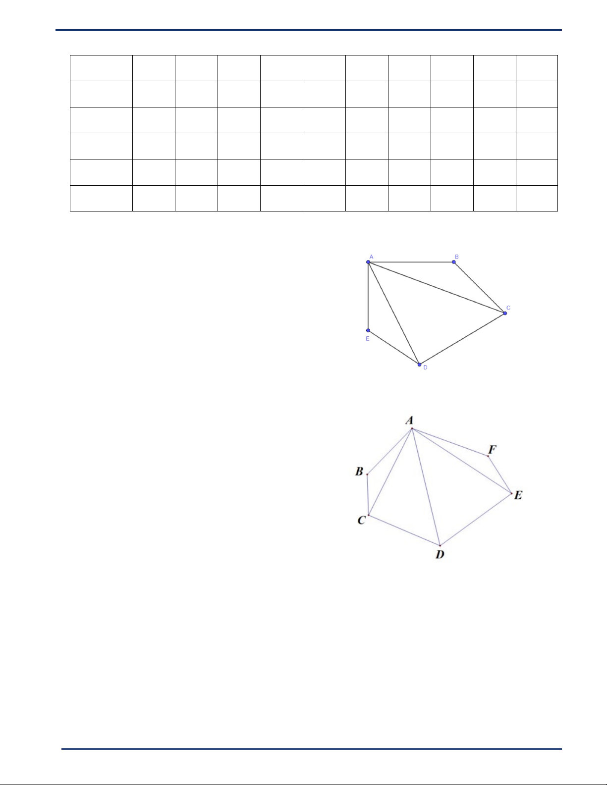 Câu 1: Cho ngũ giác ABCDE . Kẻ các đường chéo AC và AD . A B