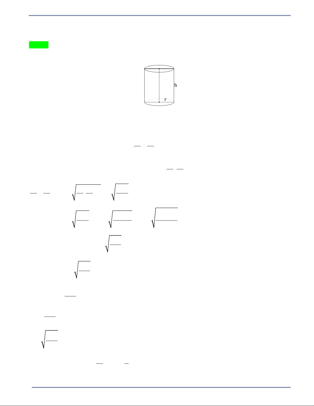 Câu 13: Cho hình trụ có bán kính đáy R = 8 cm và diện tích toàn phần 564π 2
