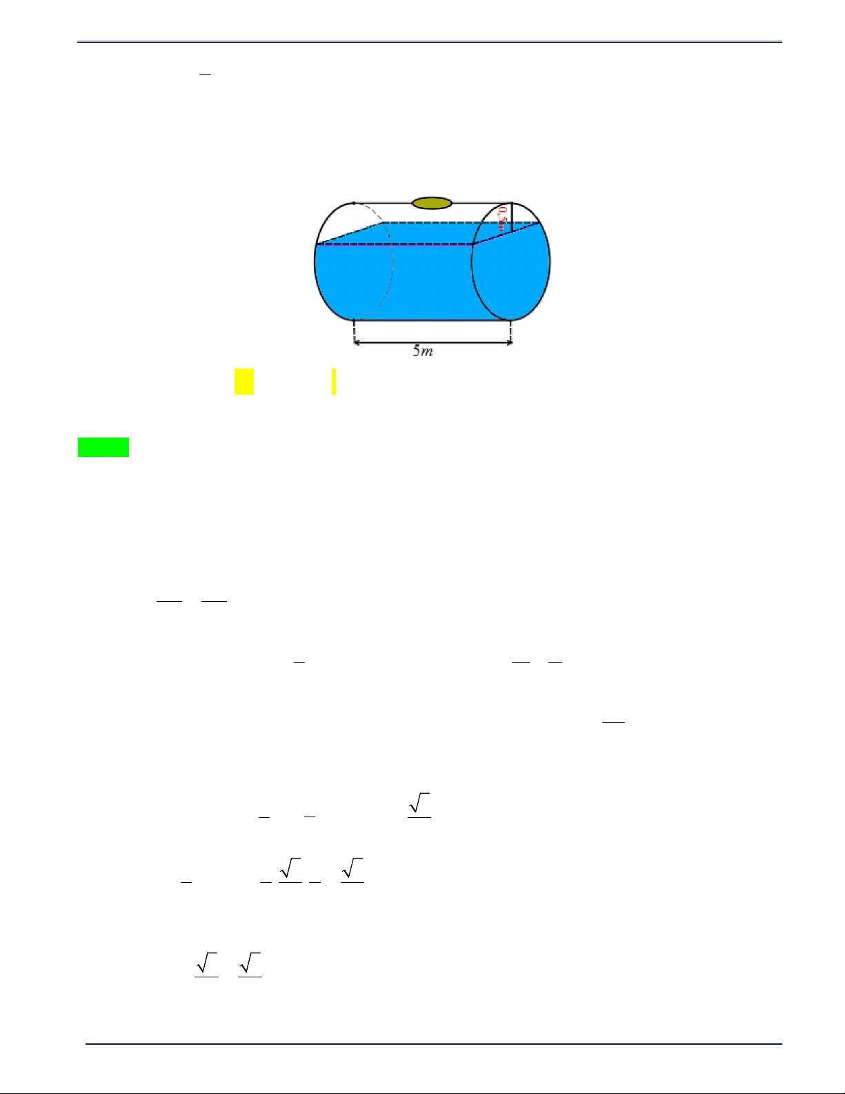 Câu 20: Một bồn hình trụ chứa dấu, được đặt nằm ngang. Bồn có chiều dài 5 m , bán kính đáy 1 m , nắp