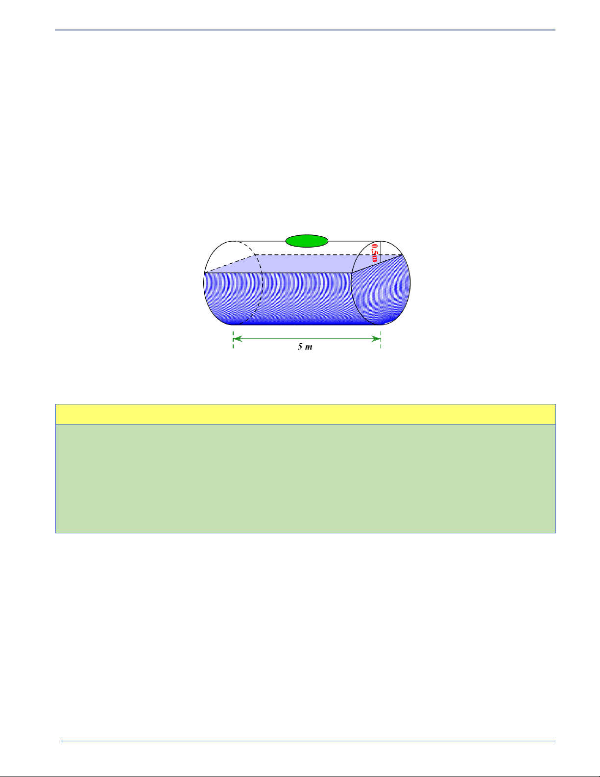 bồn đặt trên mặt nằm ngang của mặt trụ. Người ta rút dầu trong bồn tương ứng với 0,5 m của đường kính