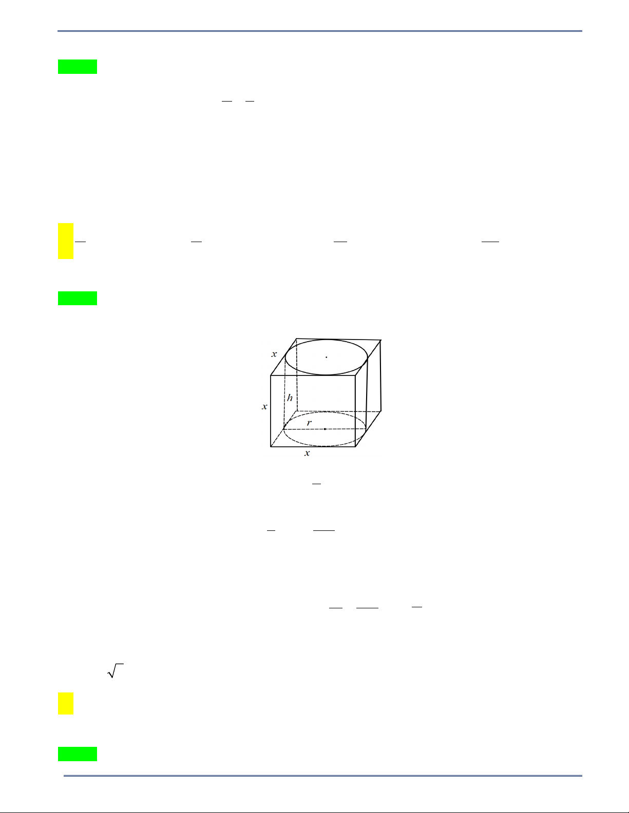 Câu 16: Cho hình trụ nội tiếp trong hình lập phương có cạnh bằng x . Tỷ số thể tích của khối trụ và khối lập phương trên là: π π π π A. B. C. D. 2 4 2 12 3