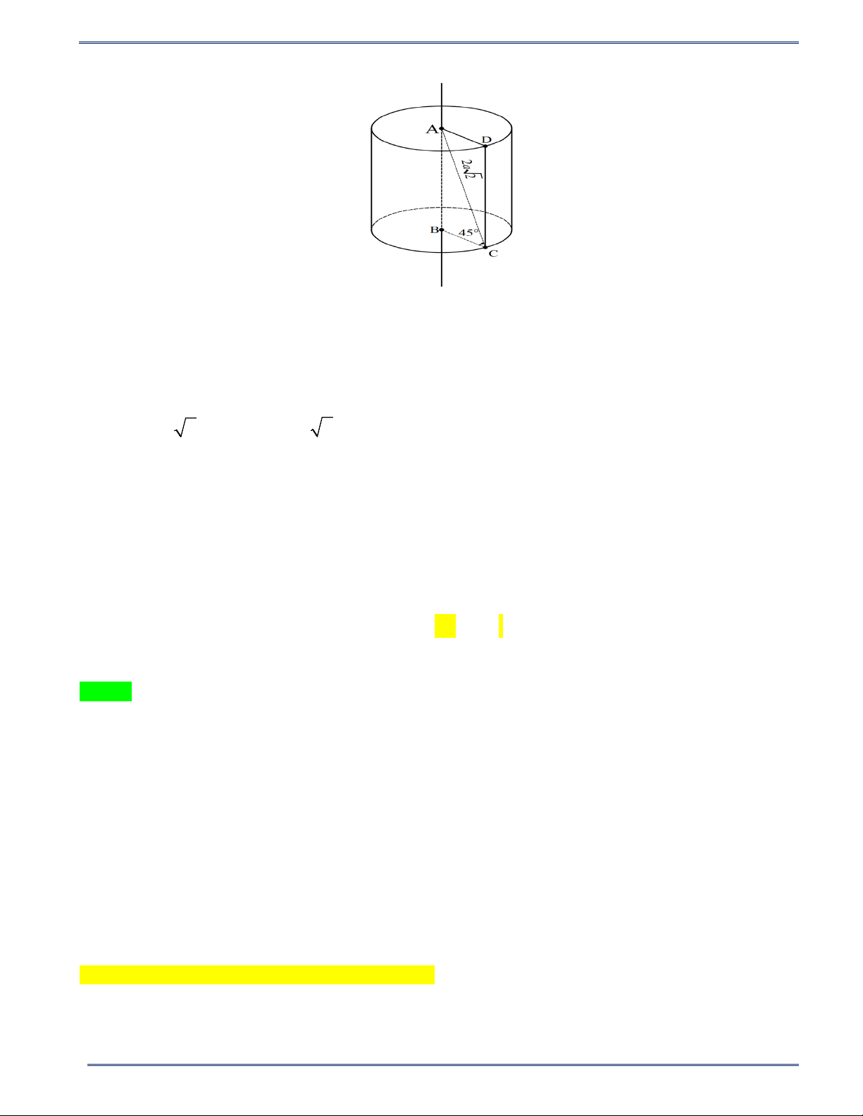 Câu 17: Hình trụ (T ) được sinh ra khi quay hình chữ nhật ABCD một vòng quanh cạnh AB . Biết