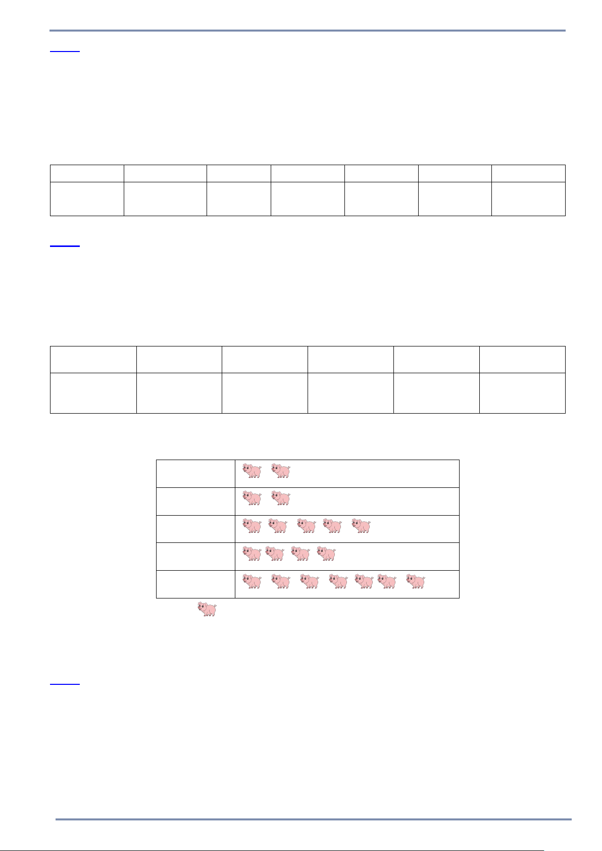 b) Vẽ biểu đồ tranh biểu diễn các số liệu đó. Lời giải a) Bảng thống kê Tháng 8 9 10 11 12 Khối lượng thịt 10 10 25 20 35 lợn( tạ) b) Vẽ biểu đồ tranh. Tháng 8 Tháng 9 Tháng 10 Tháng 11 Tháng 12 (Mỗi