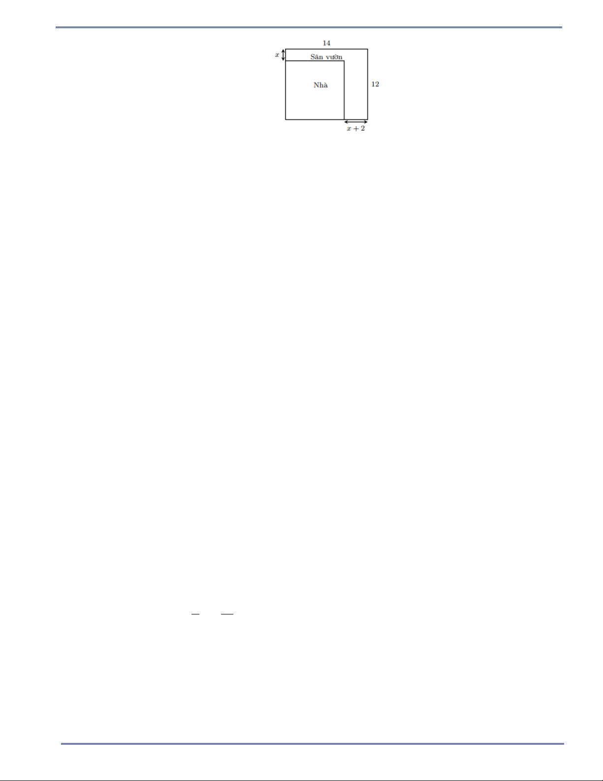 100m2. Hỏi x bằng bao nhiêu mét? A. 1,5m B. 1,75m 14 C. 2m D. 2,2m . x Sân vườn 12 Nhà x + 2