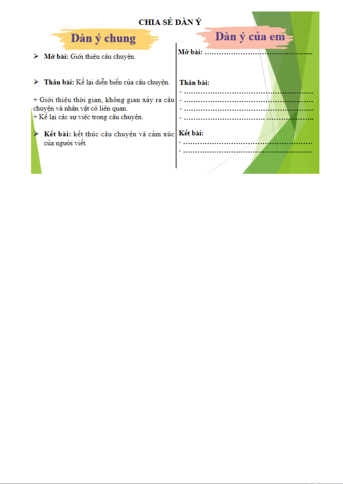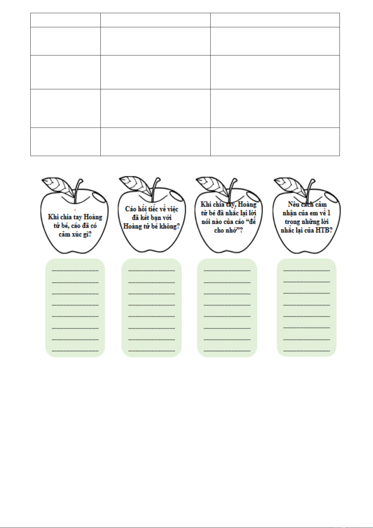 Gợi ý: Để nhớ lại các chi tiết, hãy viết tự do theo trí nhớ của em bằng cách trả