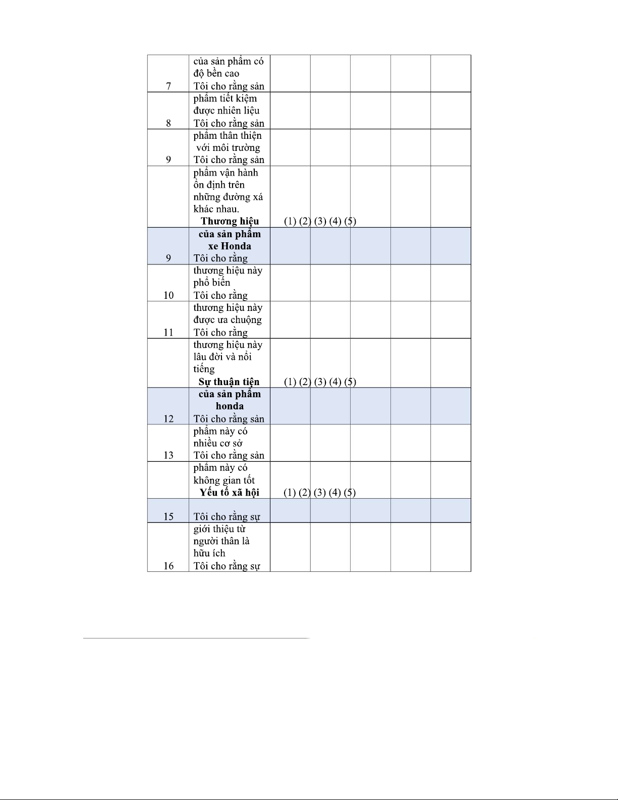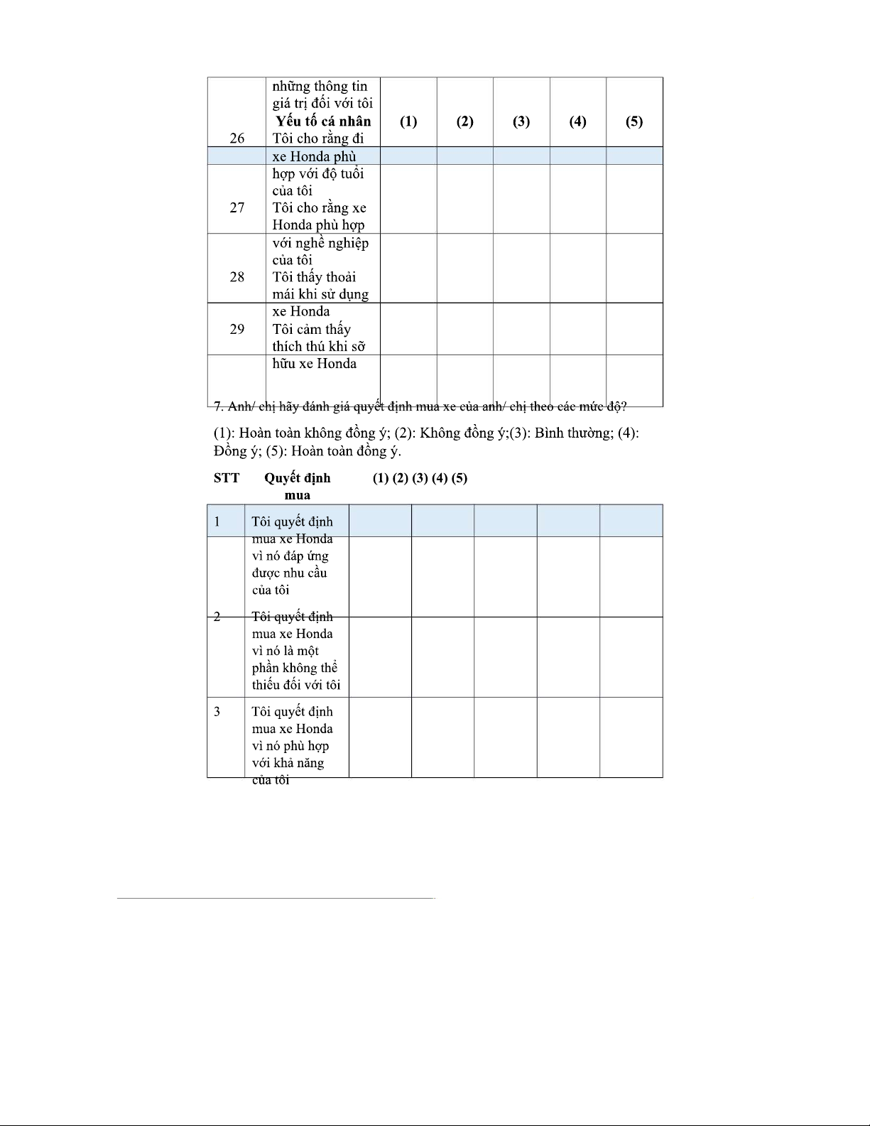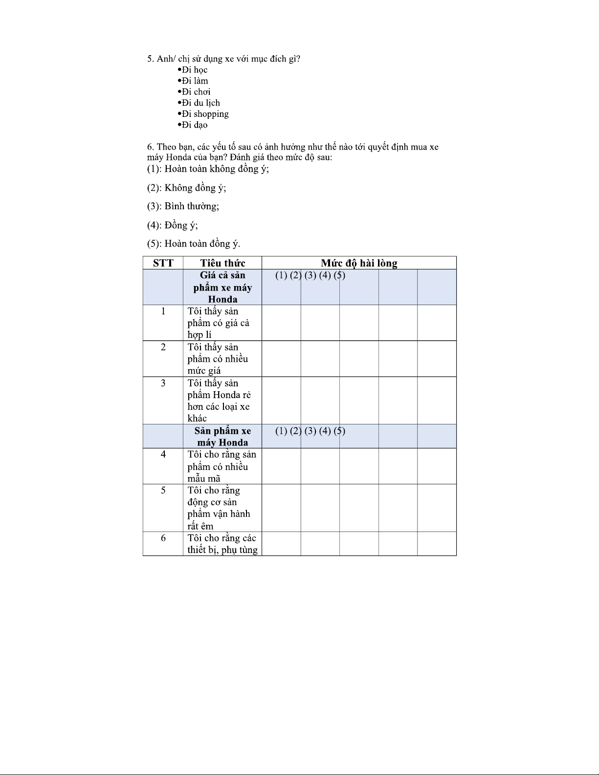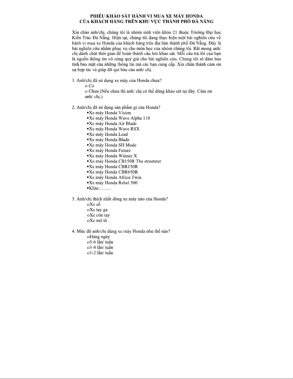PHIẾU KHẢO SÁT HÀNH VI MUA XE MÁY HONDA TẠI ĐÀ NẴNG