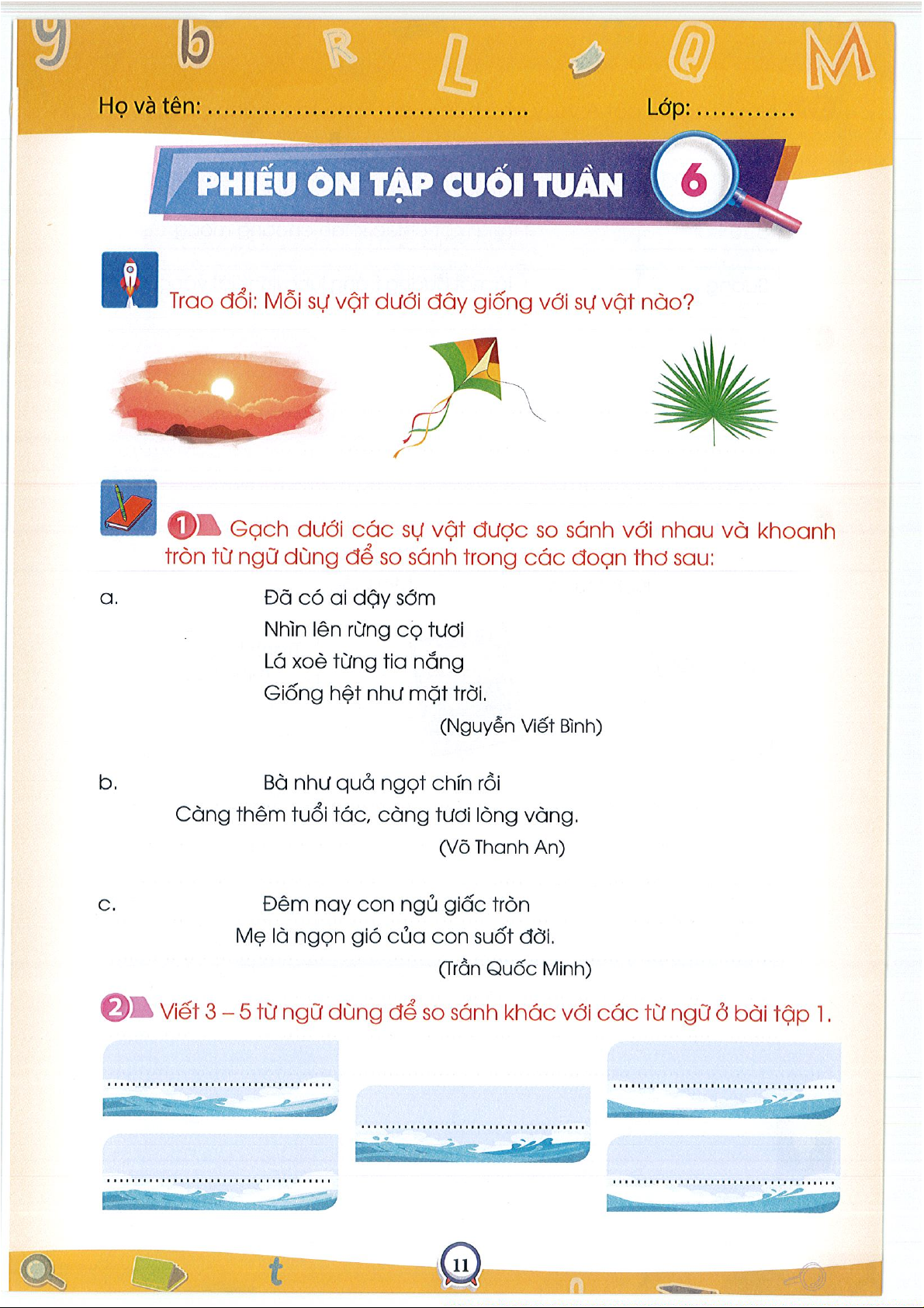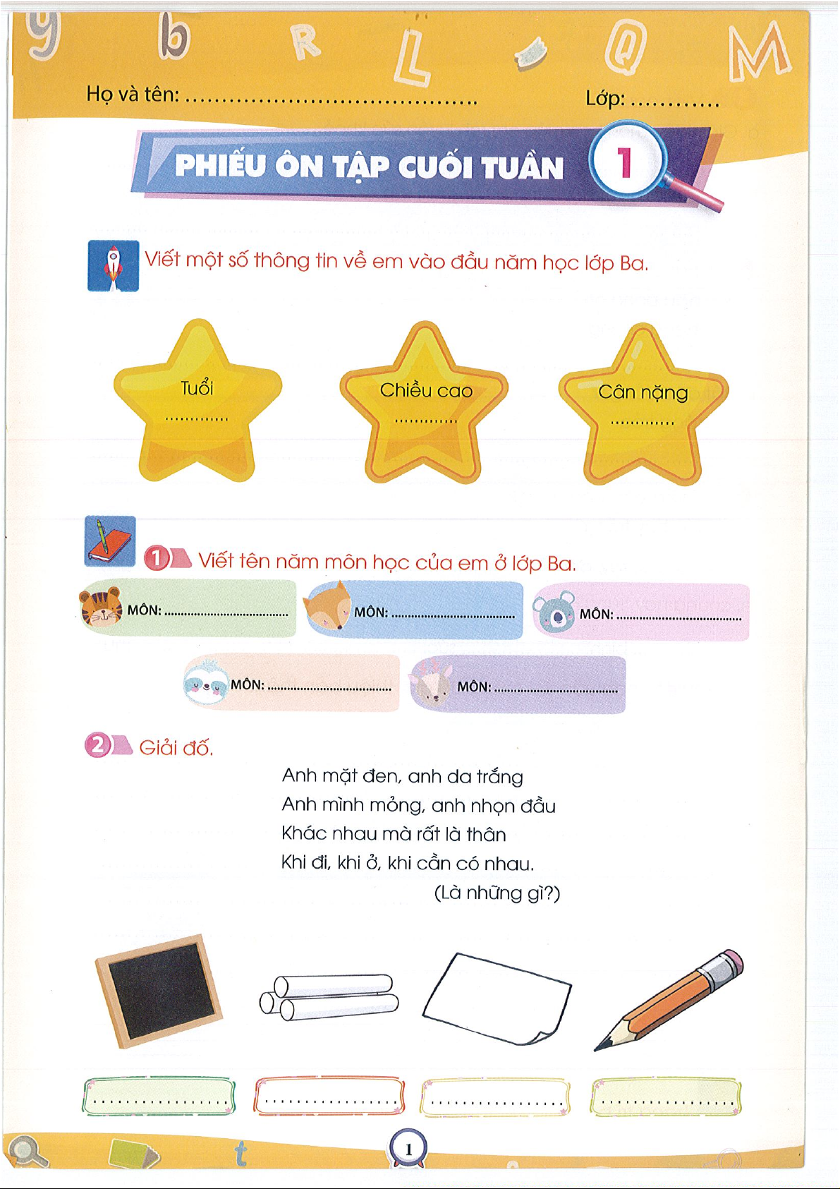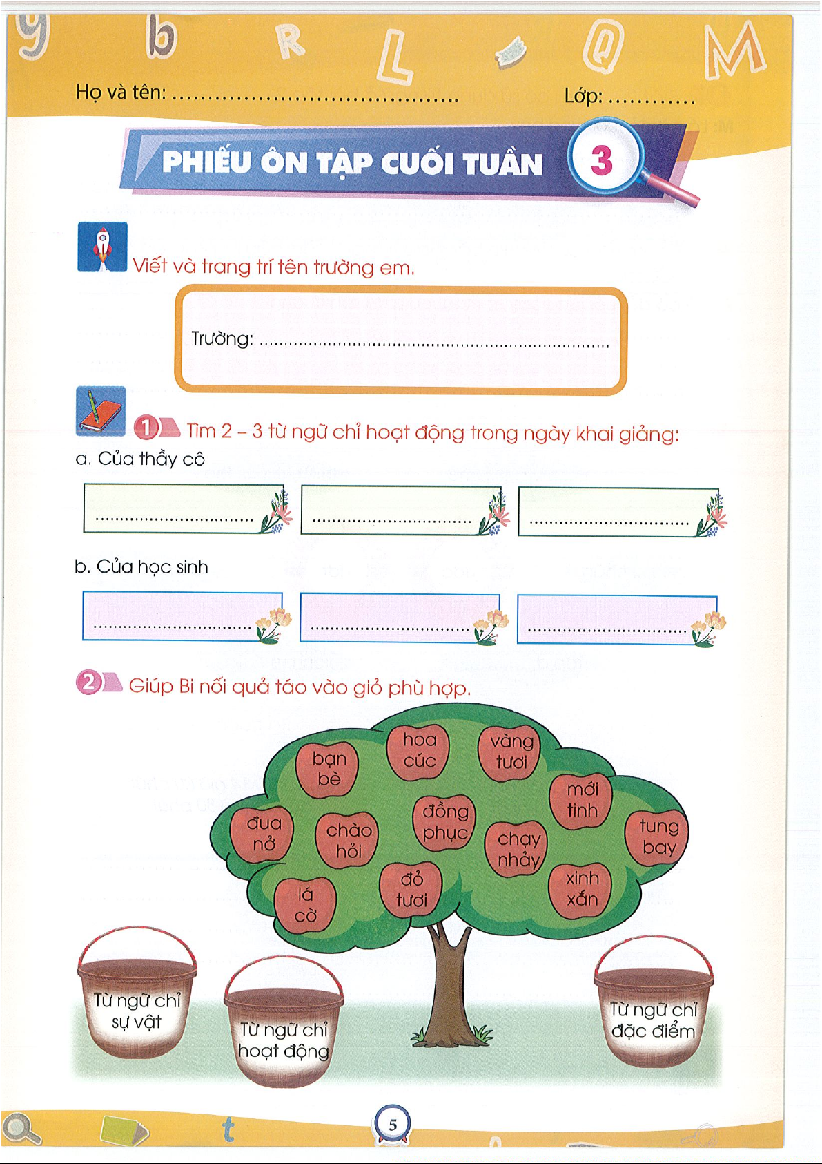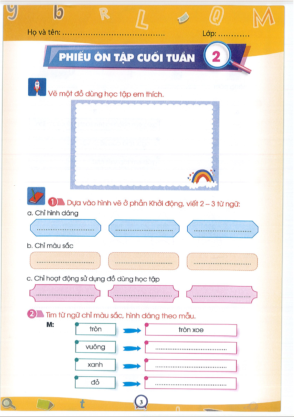 Phiếu ôn tập cuối tuần 1Tiếng việt 3- CTST