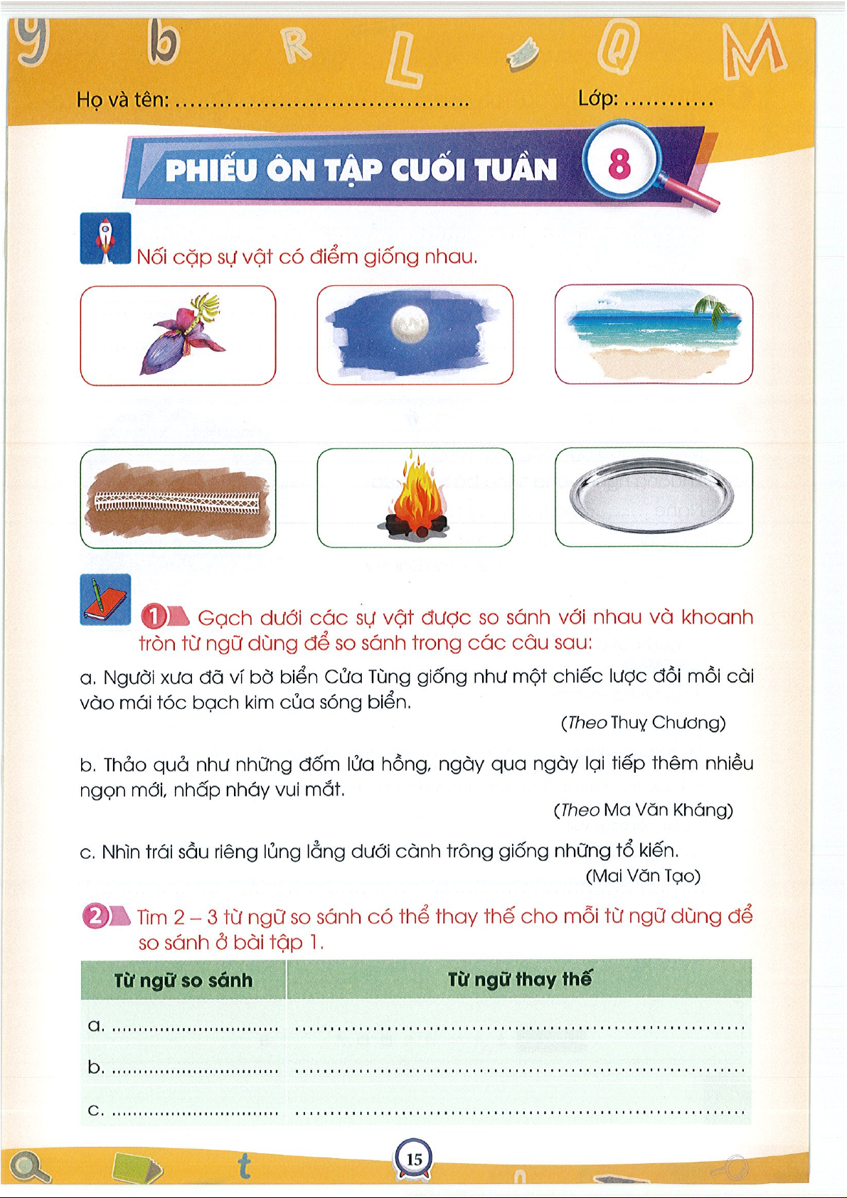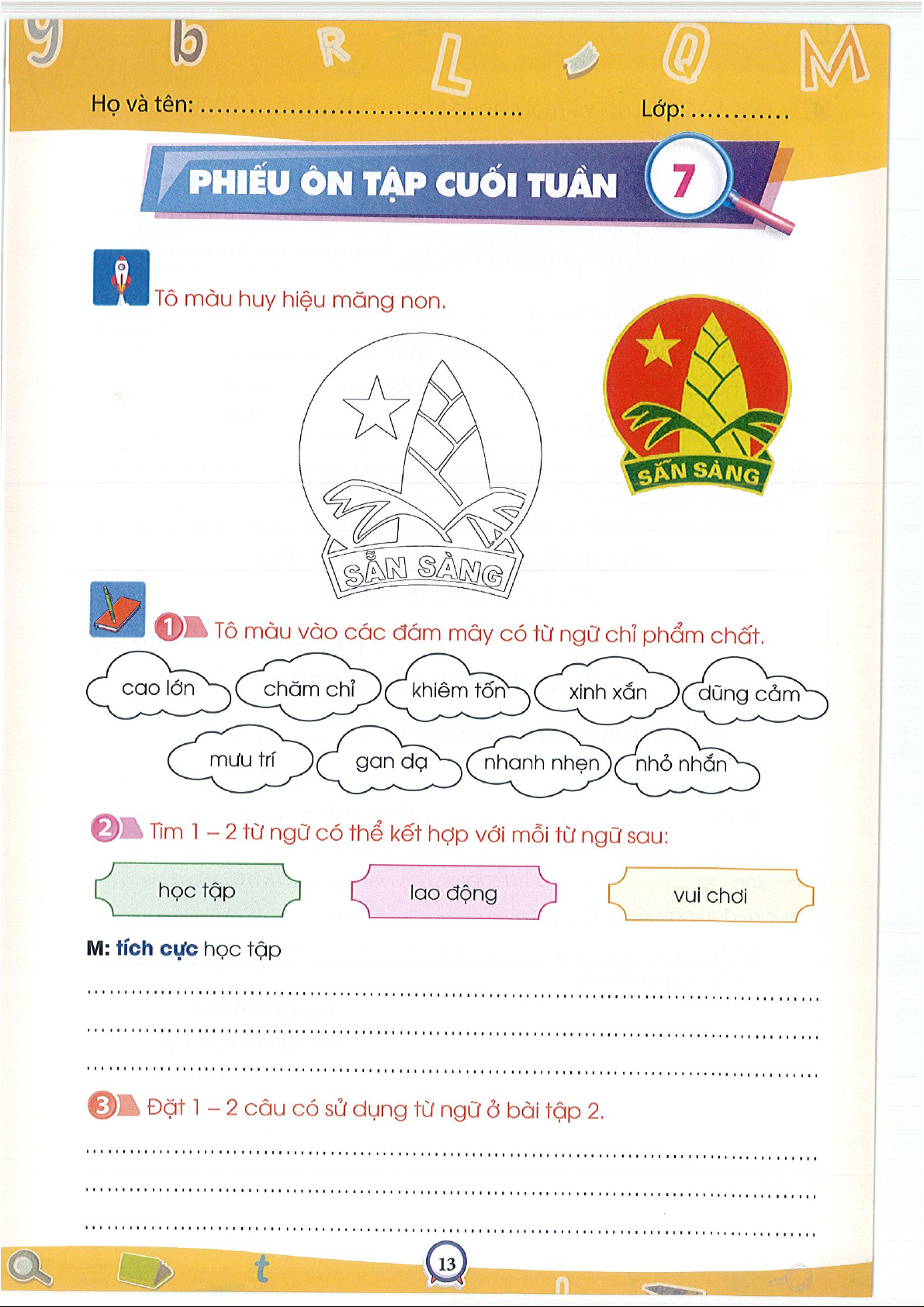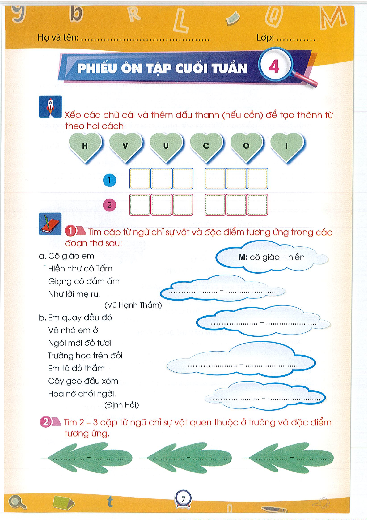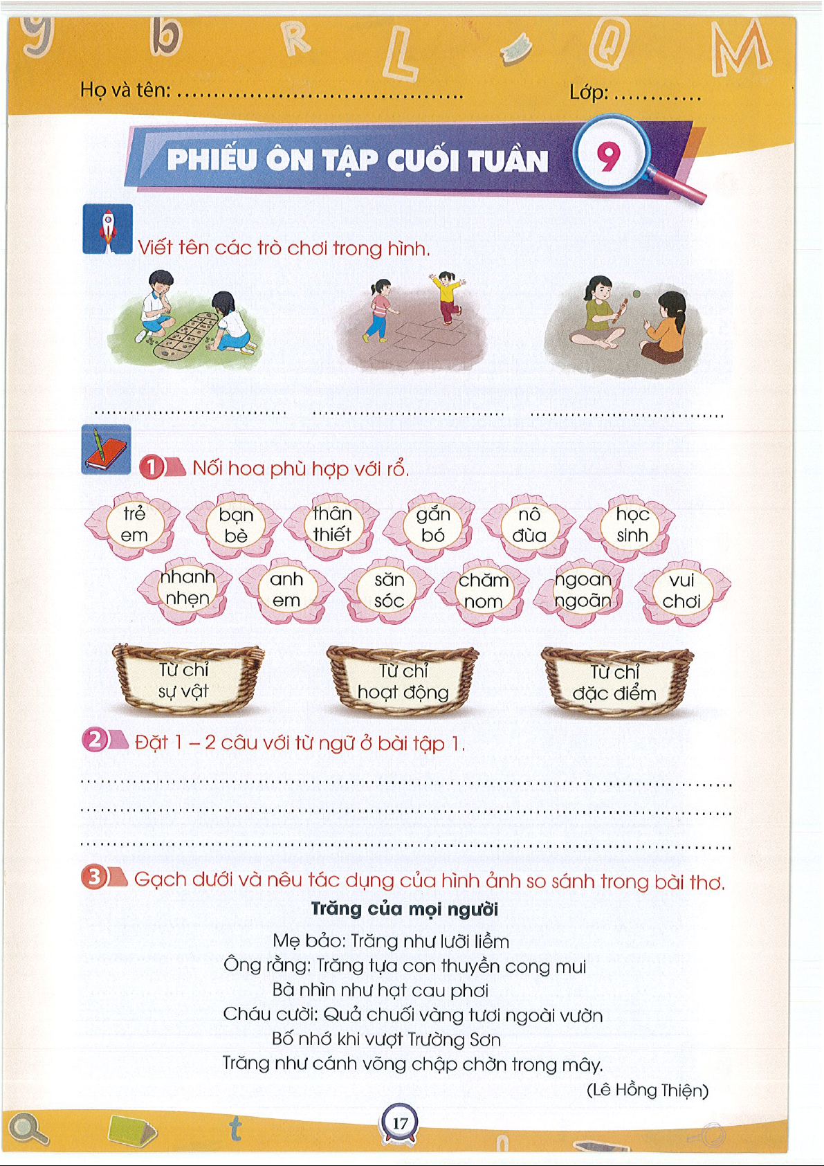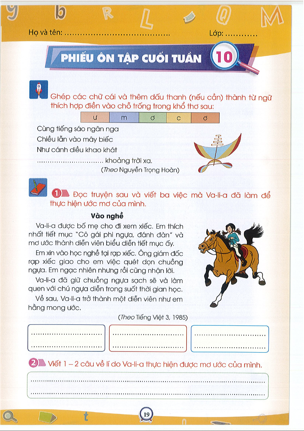 Phiếu ôn tập cuối tuần 1Tiếng việt 3- CTST