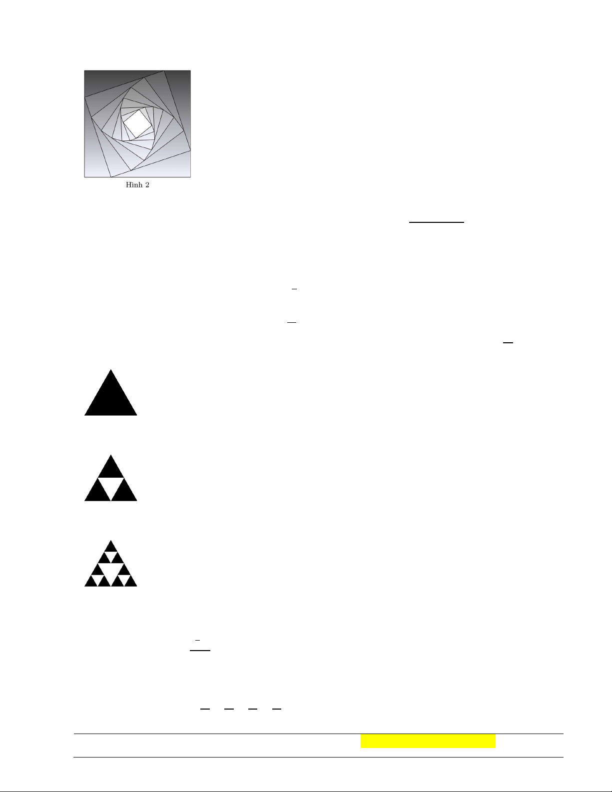 thứ ba. Cứ tiếp tục làm như thế, nhận được một dãy hình vuông (xem hình dưới). Kí hiệu 𝑆 là tổng diện