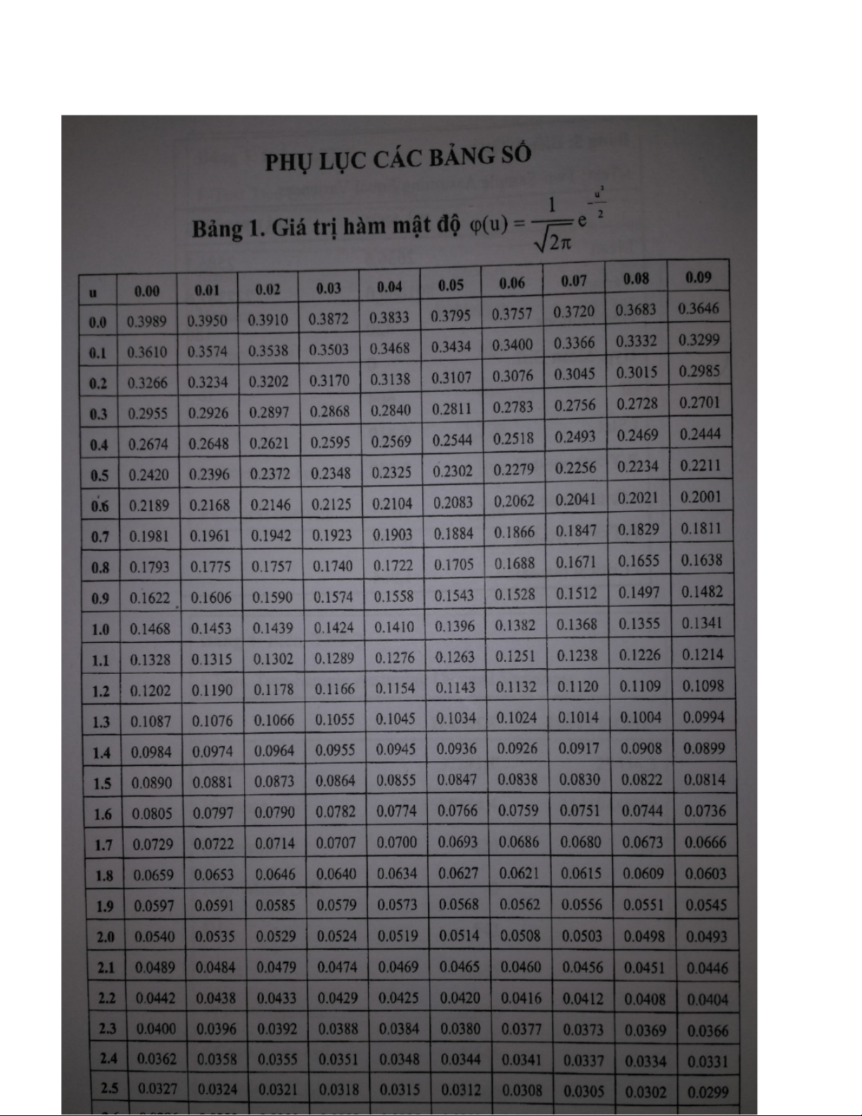 Phụ lục bảng xs - sdfa môn Xác suất thống kê| Trường Đại học Ngoại Thương