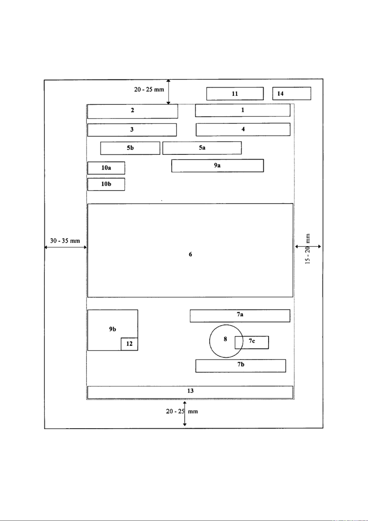 35 mm, cách mép phải 15 - 20 mm.