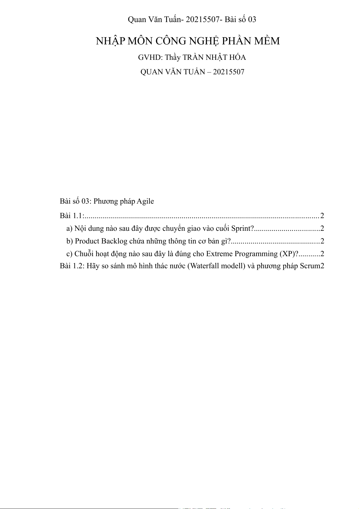 Bài số 03: Phương pháp Agile Bài 1.1: