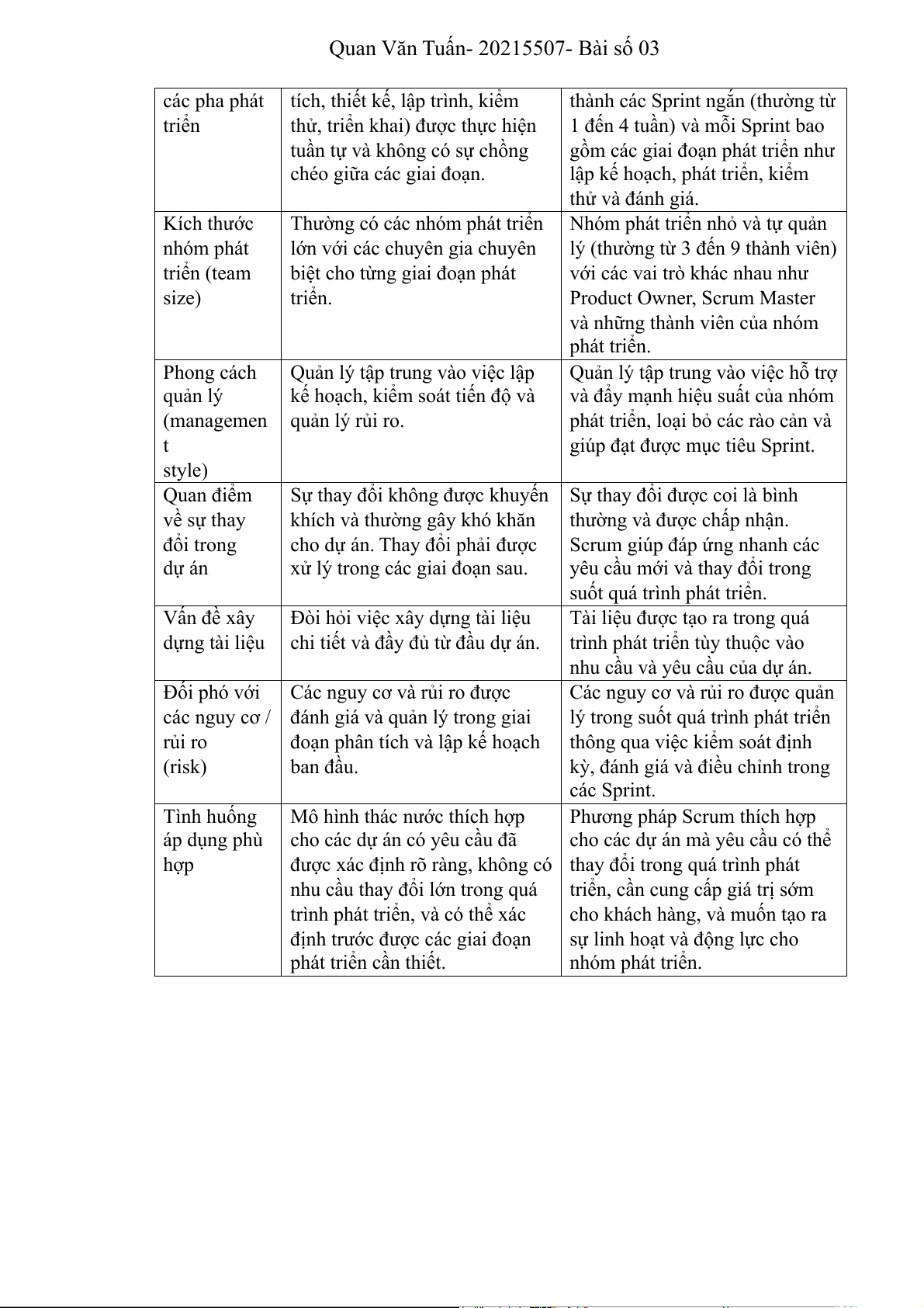 Bài 1.2: Hãy so sánh mô hình thác nước (Waterfall modell) và phương pháp Scrum2