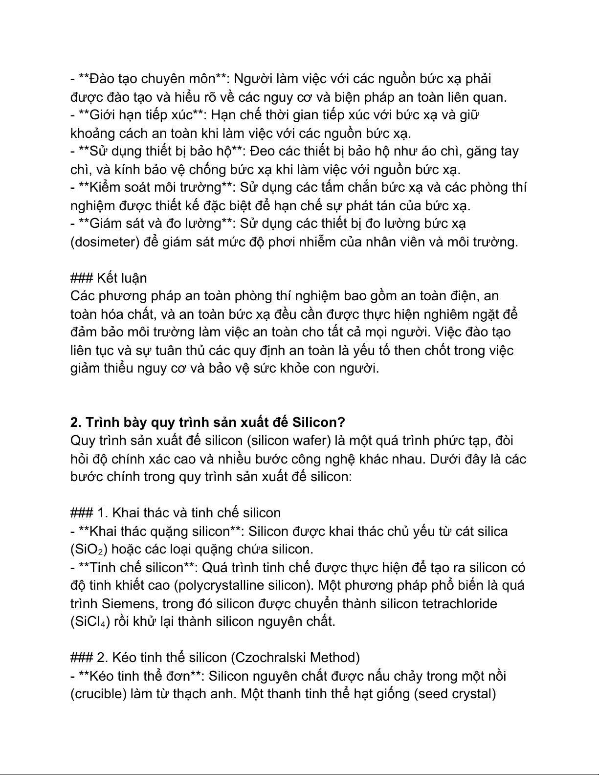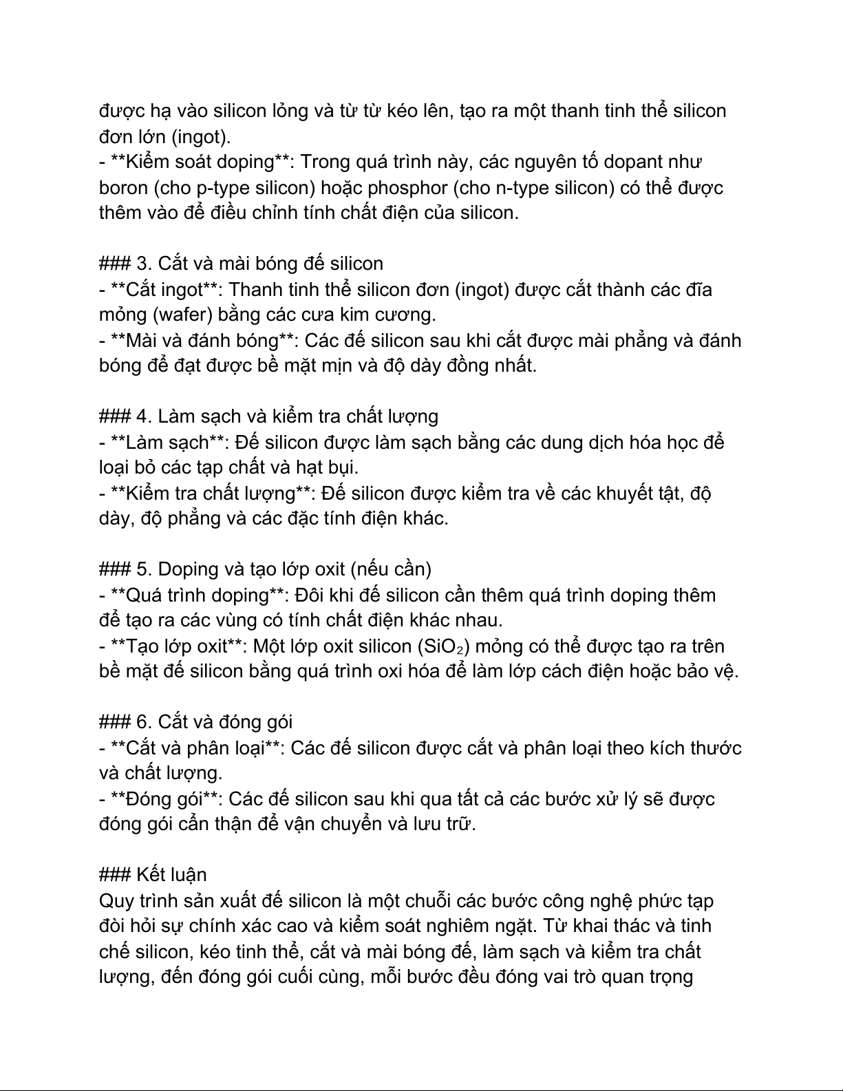 - **Tinh chế silicon**: Quá trình tinh chế được thực hiện để tạo ra silicon có