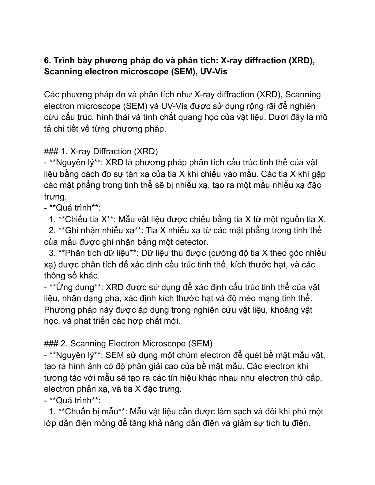tả chi tiết về từng phương pháp. ### 1. X-ray Diffraction (XRD)