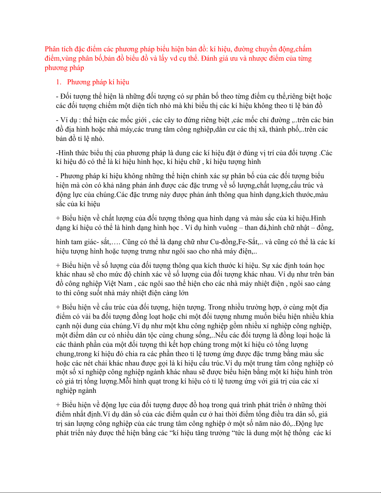 điểm,vùng phân bố,bản đồ biểu đồ và lấy vd cụ thể. Đánh giá ưu và nhược điểm của từng phương pháp 1. Phương pháp kí hiệu