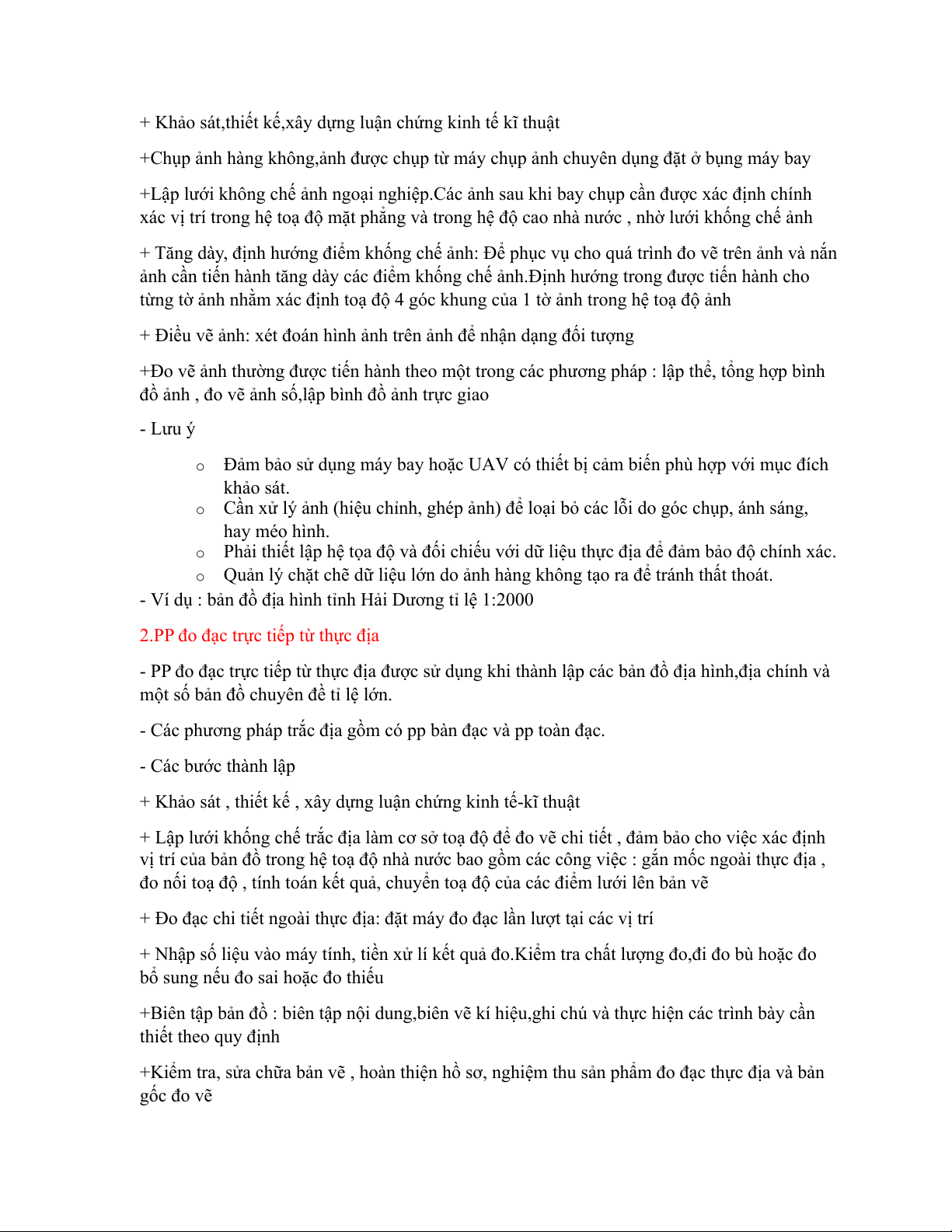 - PP đo đạc trực tiếp từ thực địa được sử dụng khi thành lập các bản đồ địa hình,địa chính và