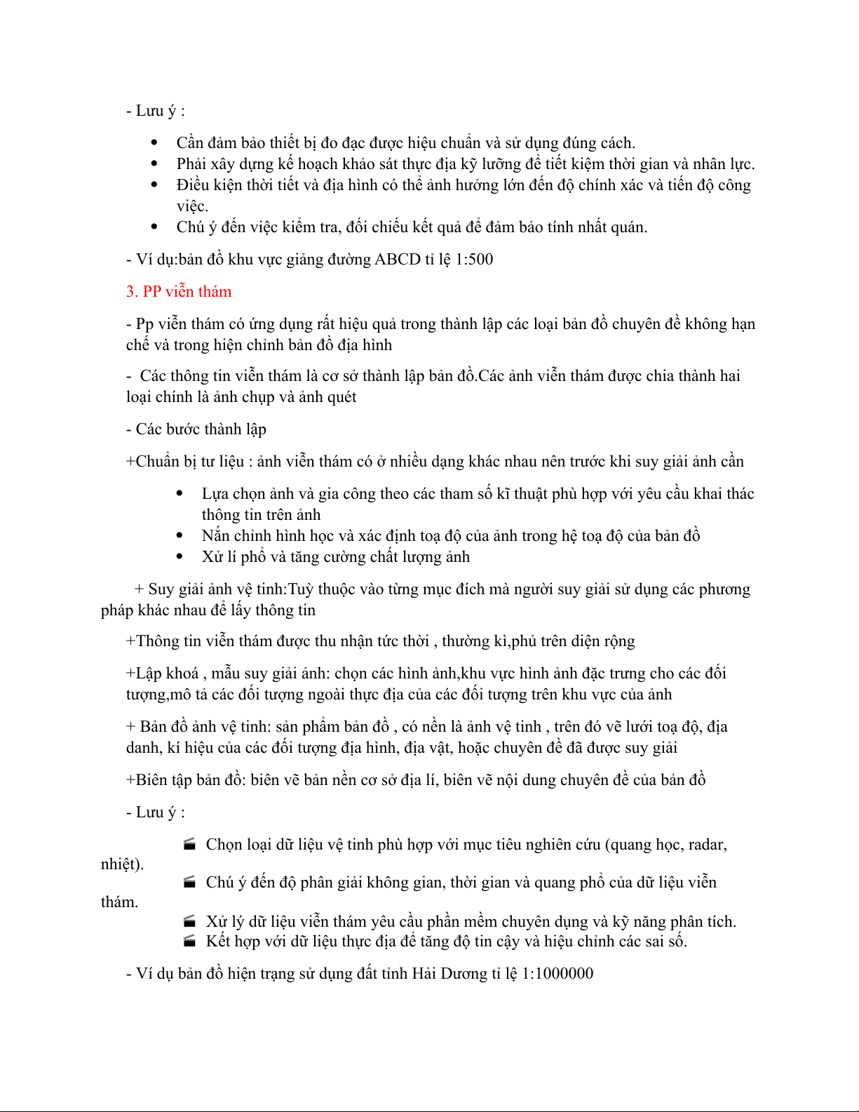 thành lập một số bản đồ mang tính chất chuyên ngành tỉ lệ lớn,như bản đồ địa chính,bản đồ lâm nghiệp. - Các bước thành lập