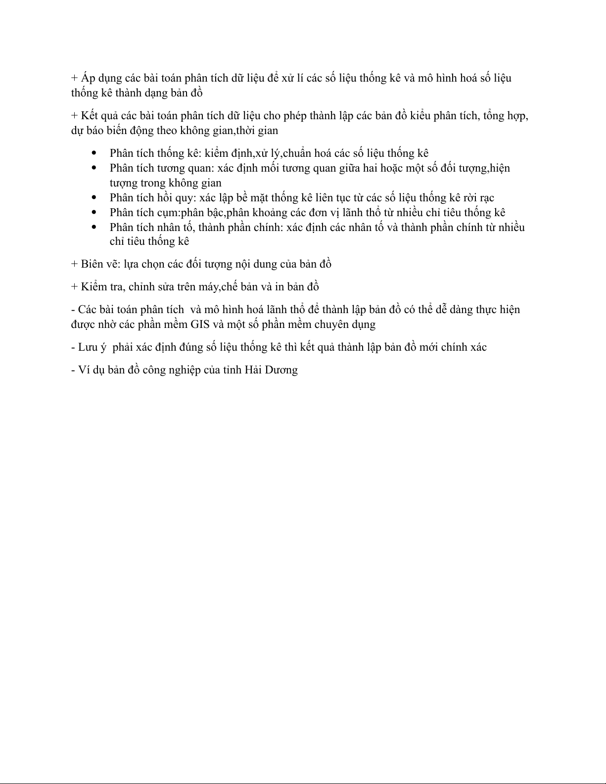 + Kết quả các bài toán phân tích dữ liệu cho phép thành lập các bản đồ kiểu phân tích, tổng hợp,