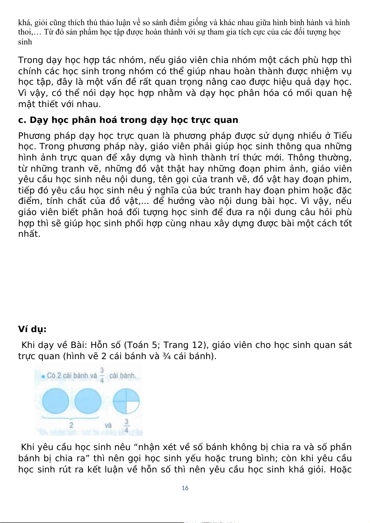 học sinh rút ra kết luận về hỗn số thì nên yêu cầu học sinh khá giỏi. Hoặc 16