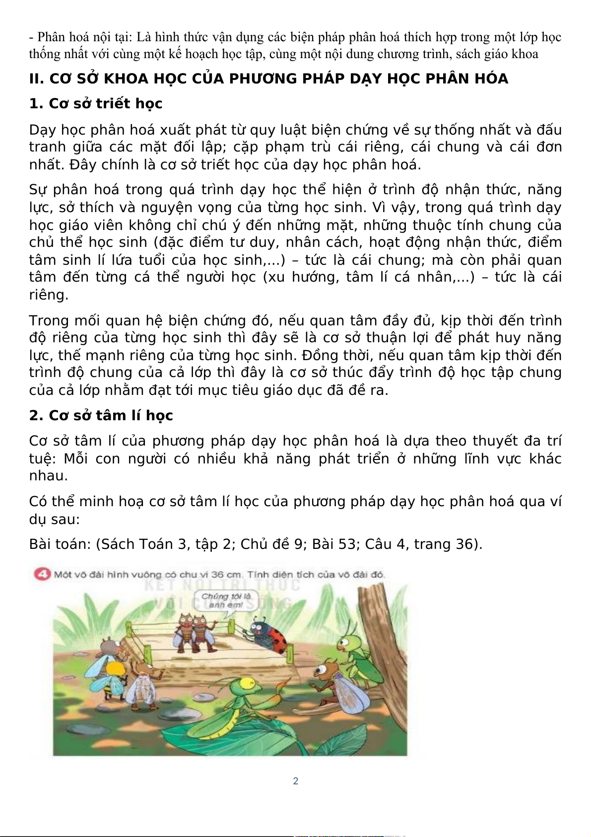 nhất. Đây chính là cơ sở triết học của dạy học phân hoá.