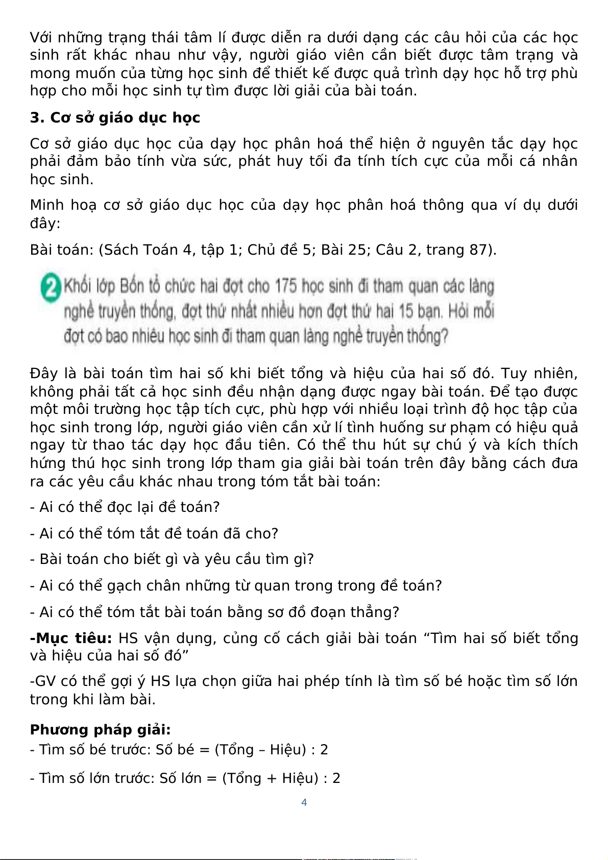 Minh hoạ cơ sở giáo dục học của dạy học phân hoá thông qua ví dụ dưới đây: