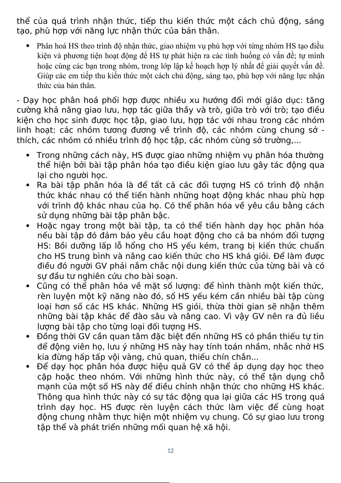 Dạy học phân hoá được coi là một hướng đổi mới phương pháp dạy học nhằm phát huy tính
