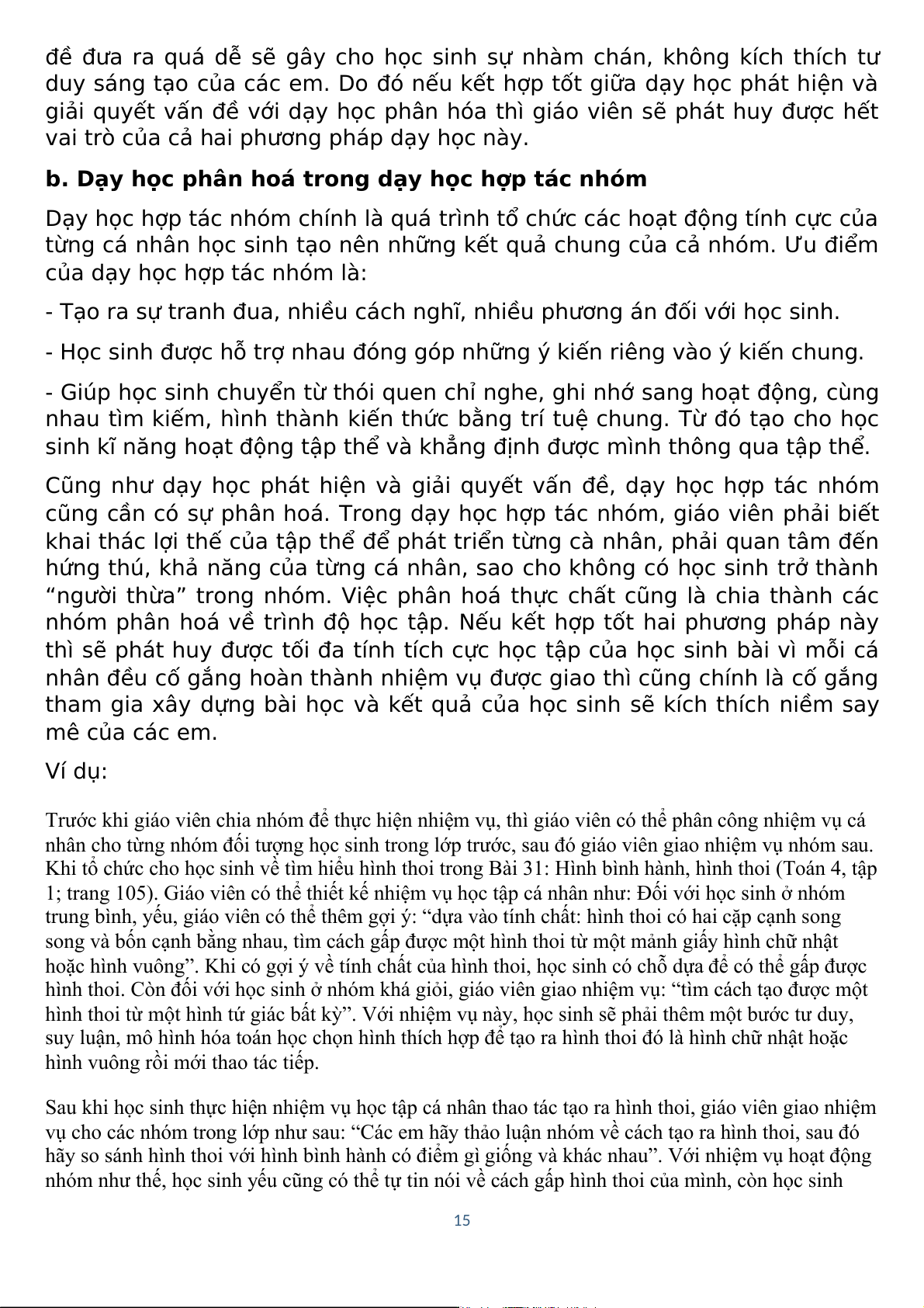 - Huy động mọi khả năng của từng học sinh để tự học sinh tìm tòi khám phá ra những nội dung mới.