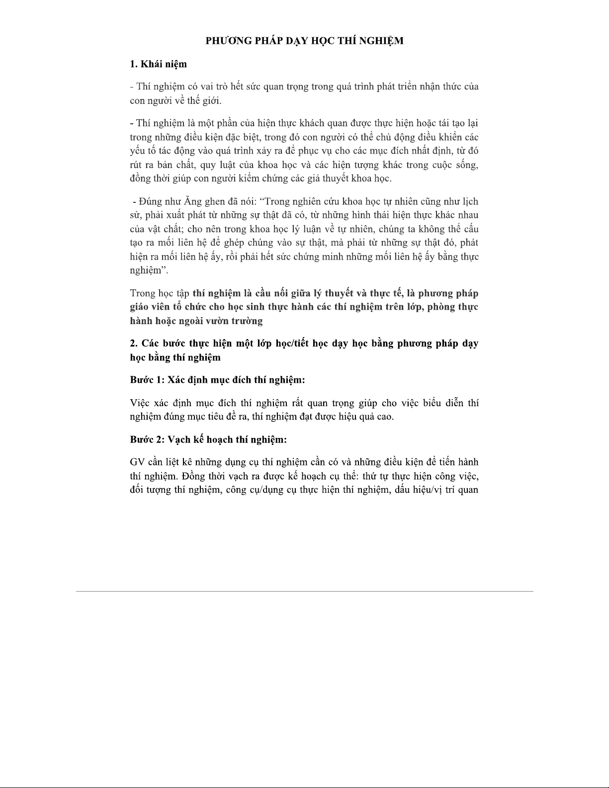 PHƯƠNG PHÁP DẠY HỌC THÍ NGHIỆM: CÁC BƯỚC và ƯU ĐIỂM