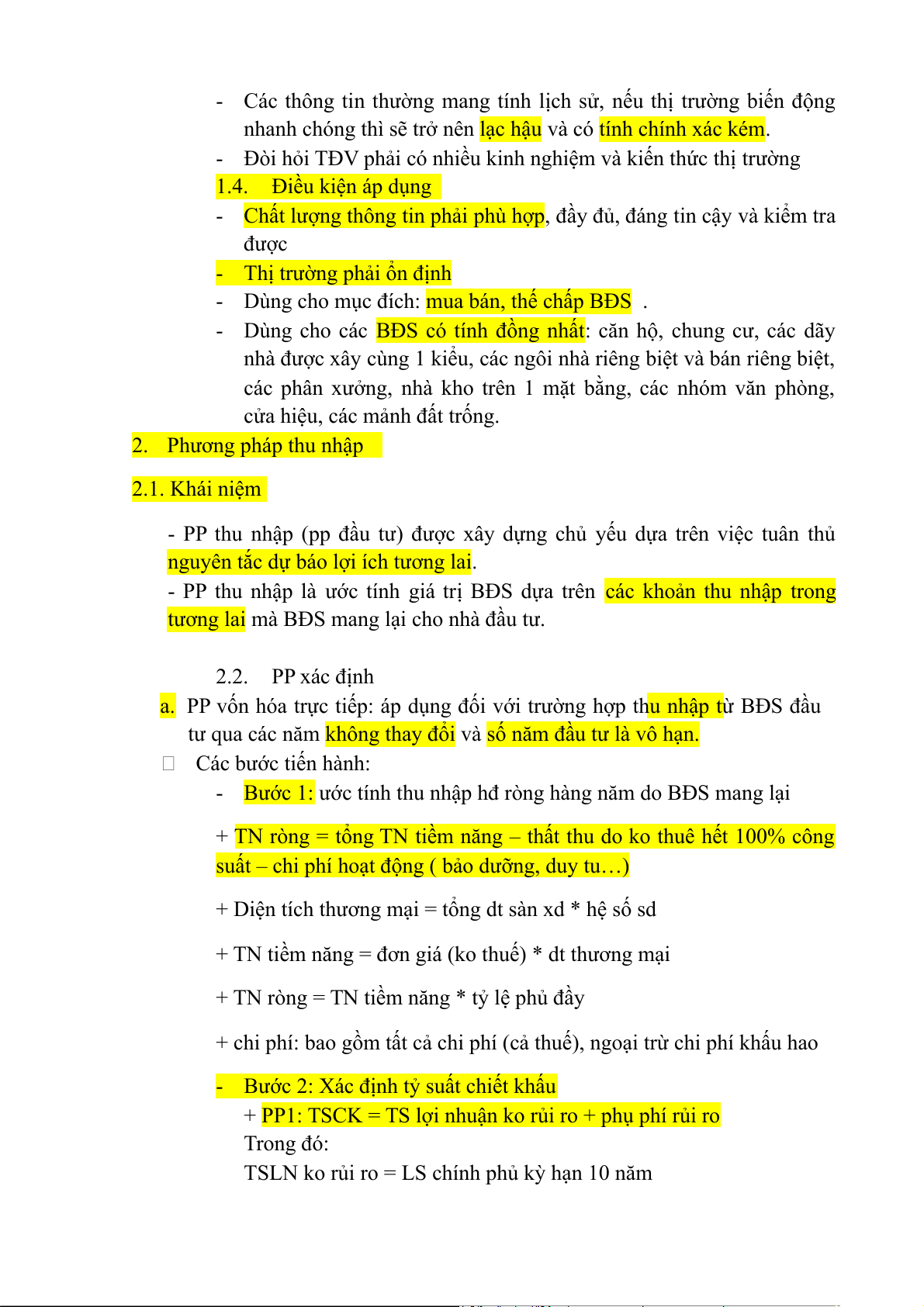 - PP này mô phỏng lại cách thức phân tích đánh giá các cơ hội đầu tư vào BĐS * Hạn chế: