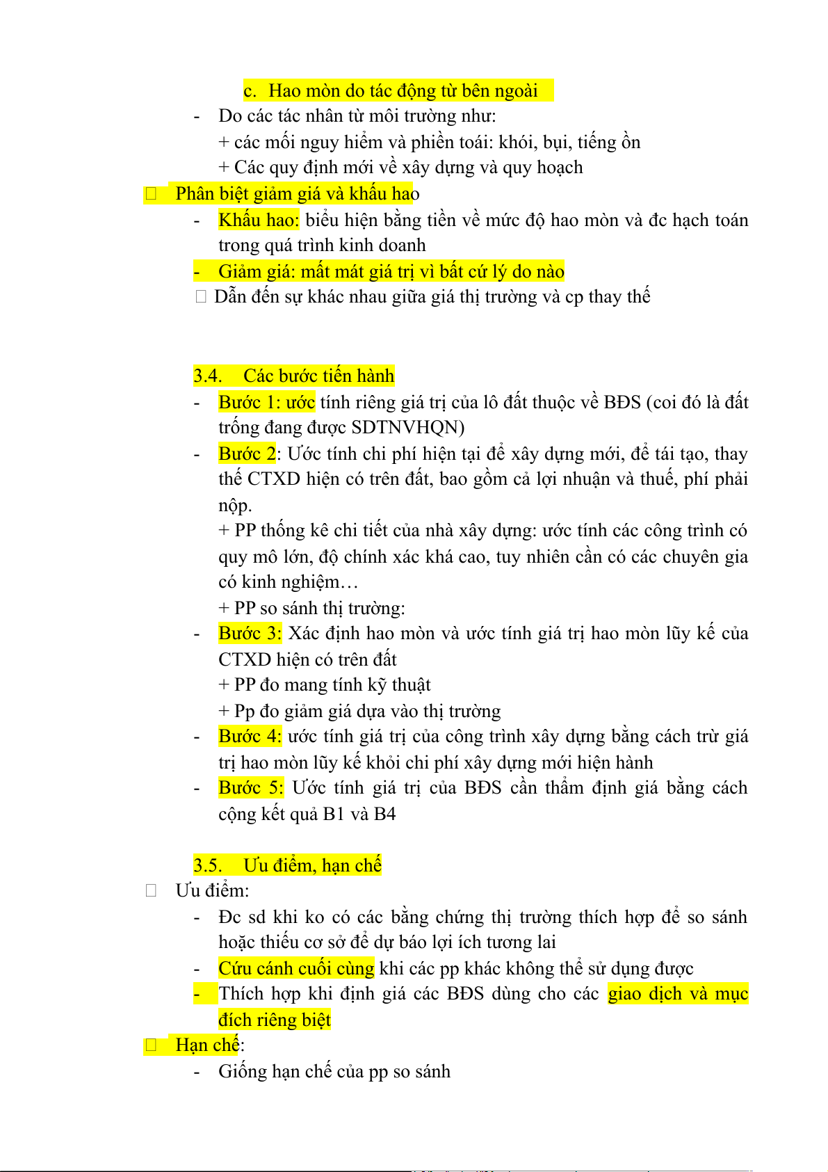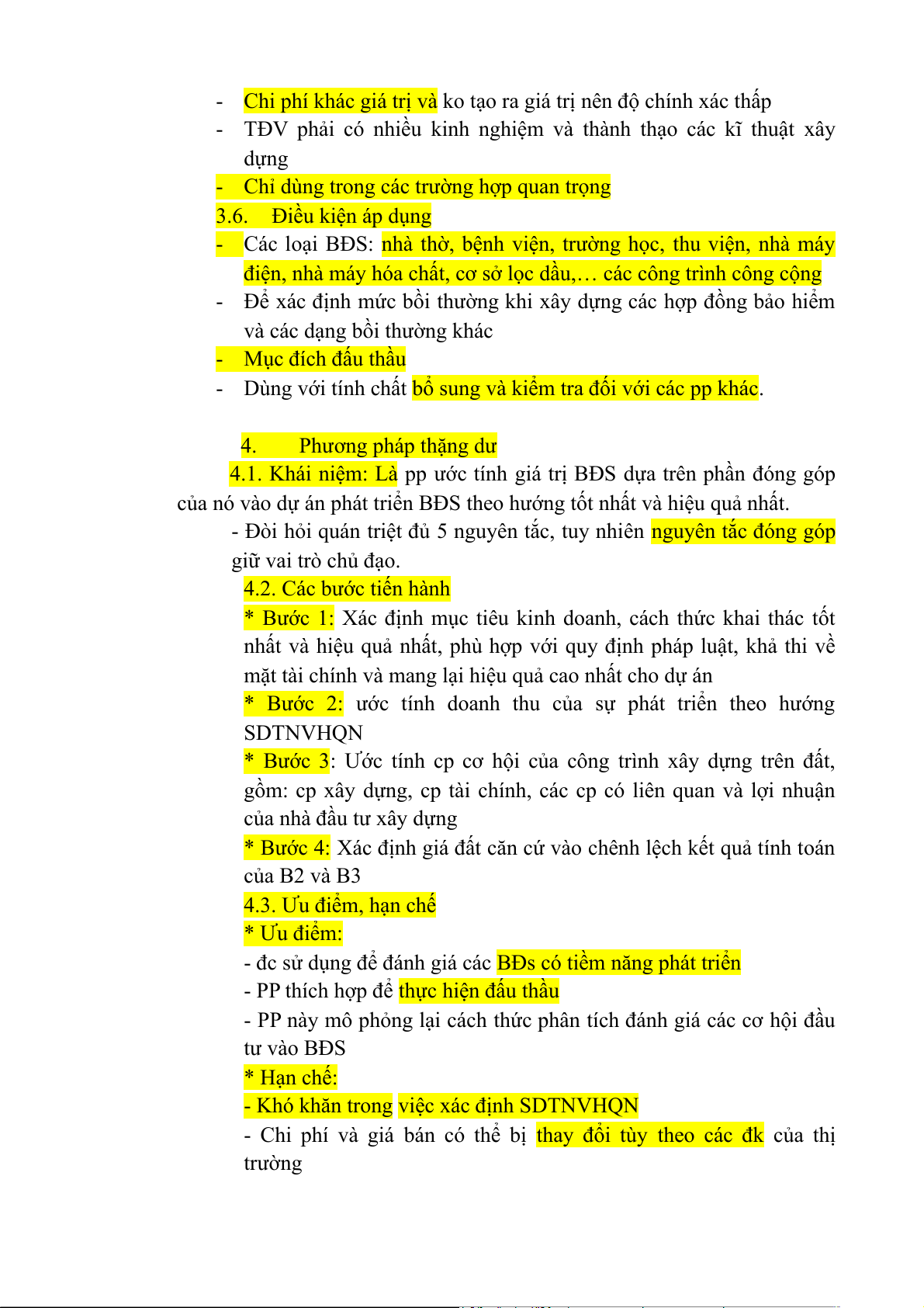 - Bước 5: Ước tính giá trị của BĐS cần thẩm định giá bằng cách cộng kết quả B1 và B4 3.5. Ưu điểm, hạn chế Ưu điểm: