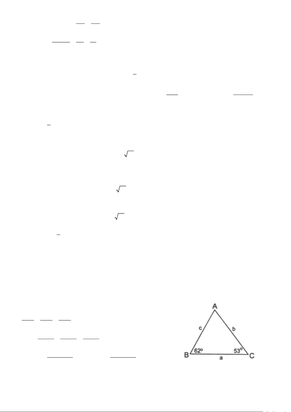 Vì ABC nhọn nên theo định lí sin ta có: a b c = = sin A sin B sin C 6,8 b c Do đó = = sin 65 sin 62 sin 53 6,8.sin 62 6,8.sin 53 Suy ra b = 6,6(cm);c = 6,0(cm) sin 65 sin 65
