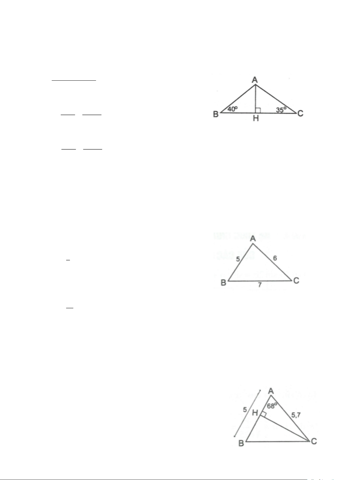 • Xét ABH vuông tại H ta có: AH 5,0 AH = A . B sinB AB = = 8,7(cm) sinB sin 35