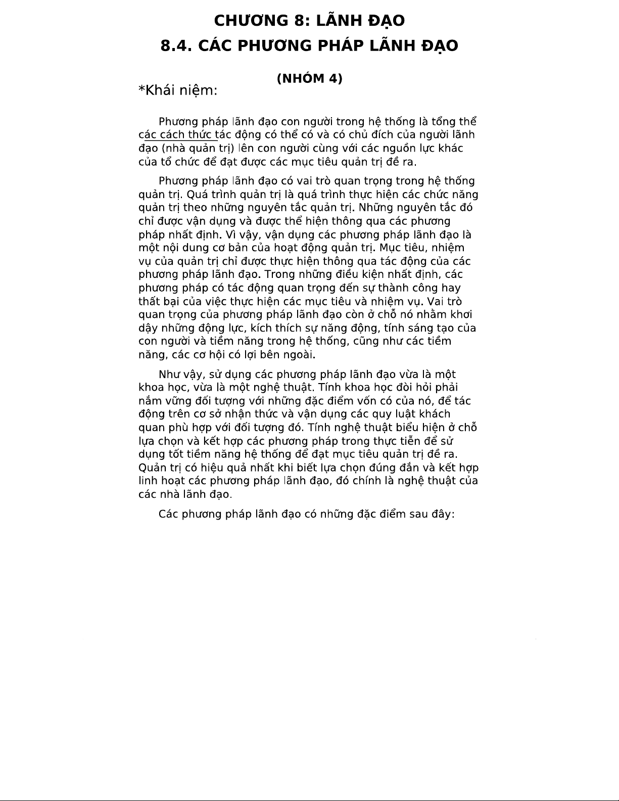 Phương pháp lãnh đạo trong Quản trị học - Nhóm 4 (Chương 8)