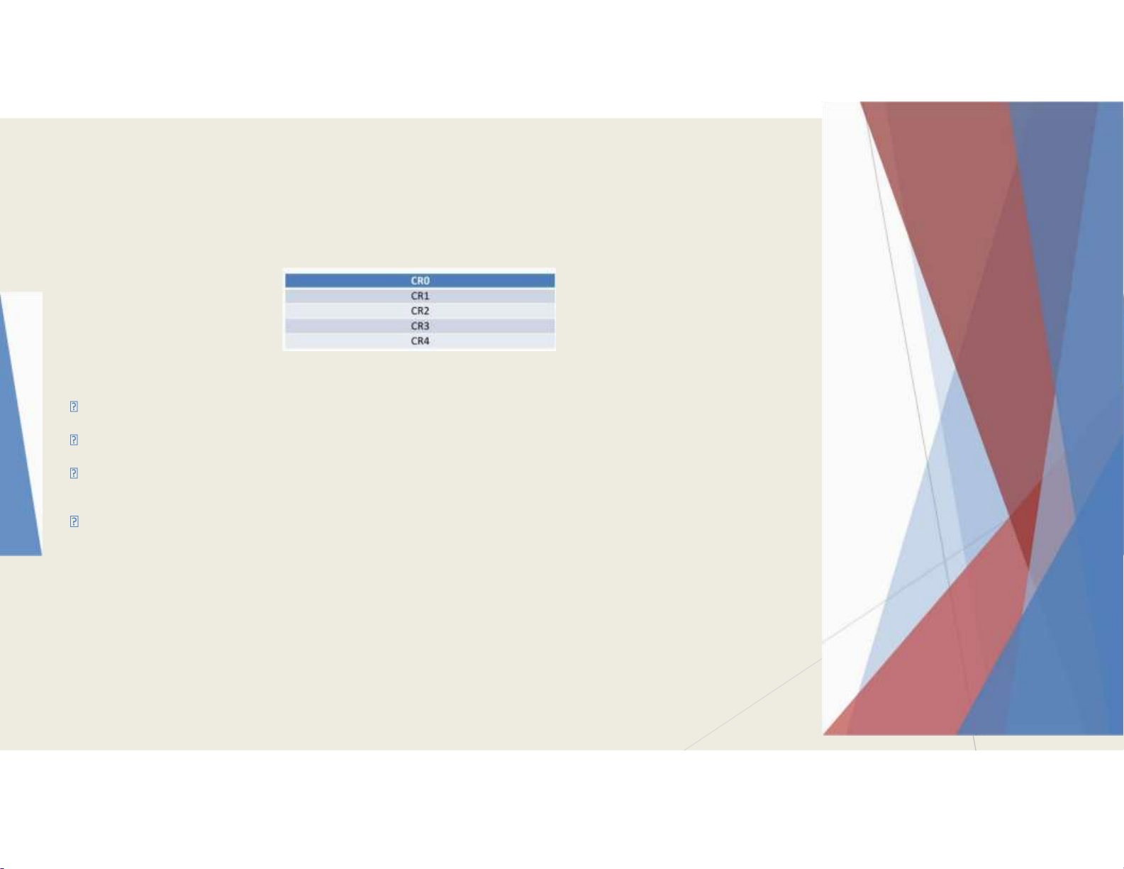 CR1: chưa sử dụng , CR2 ghi nhớ ịa chỉ trang vật lý chưa ược nạp, CR3 là thanh ghi nền thư