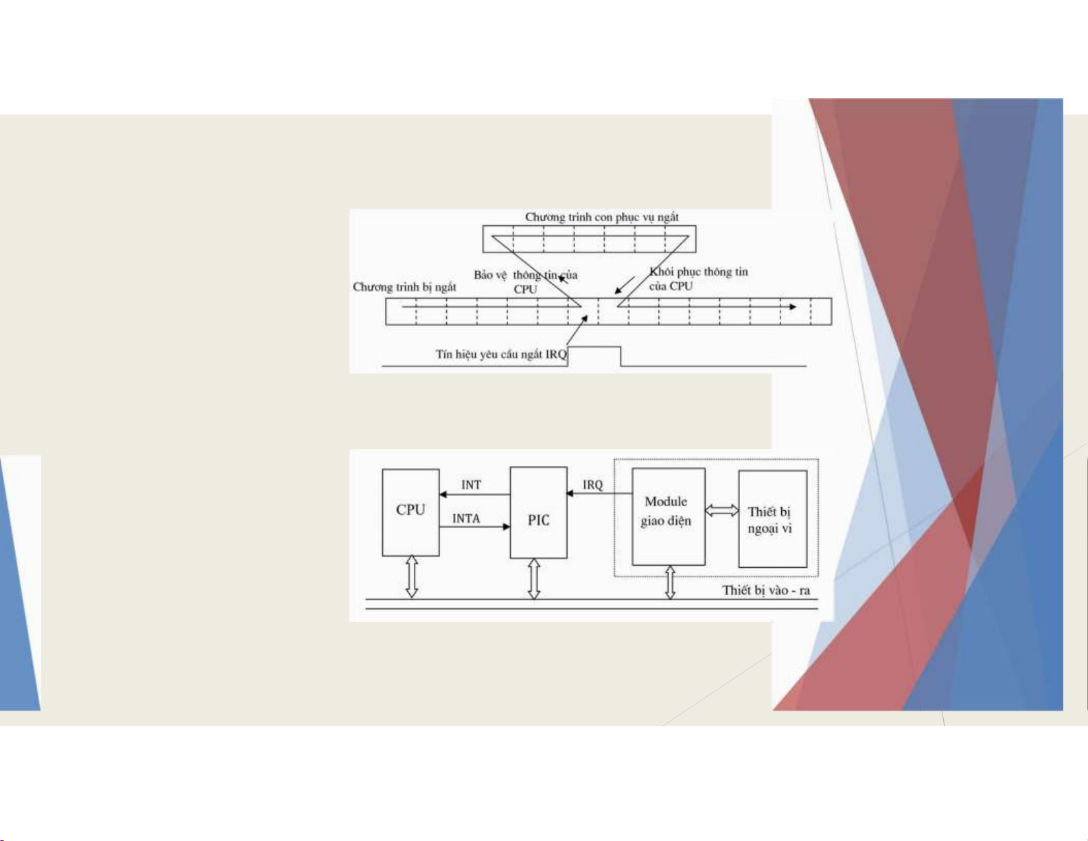 - Thiết bị PIC phát ra tín hiệu INT cho CPU, òi CPU phục vụ.