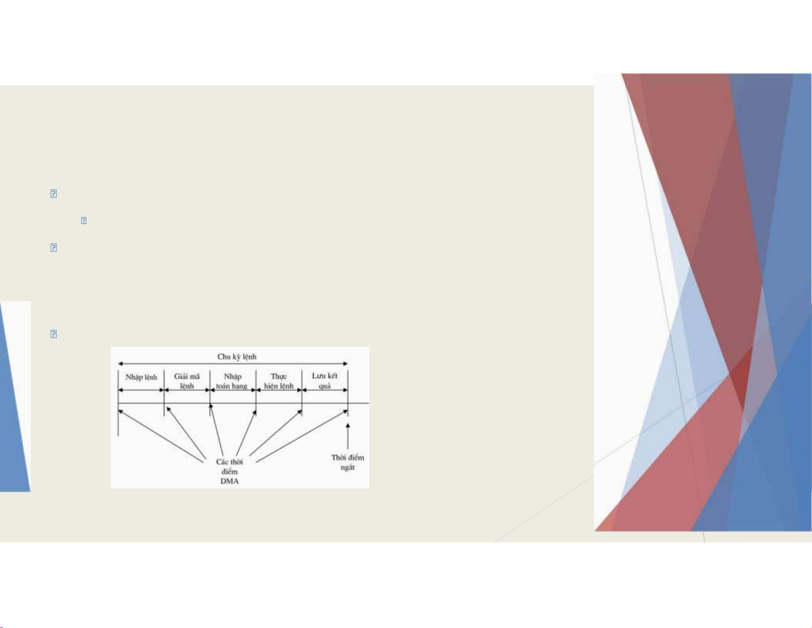 - Dựa trên ịa chỉ hoặc số ngắt này CPU nạp giá trị mới cho con trỏ lệnh PC và bắt ầu