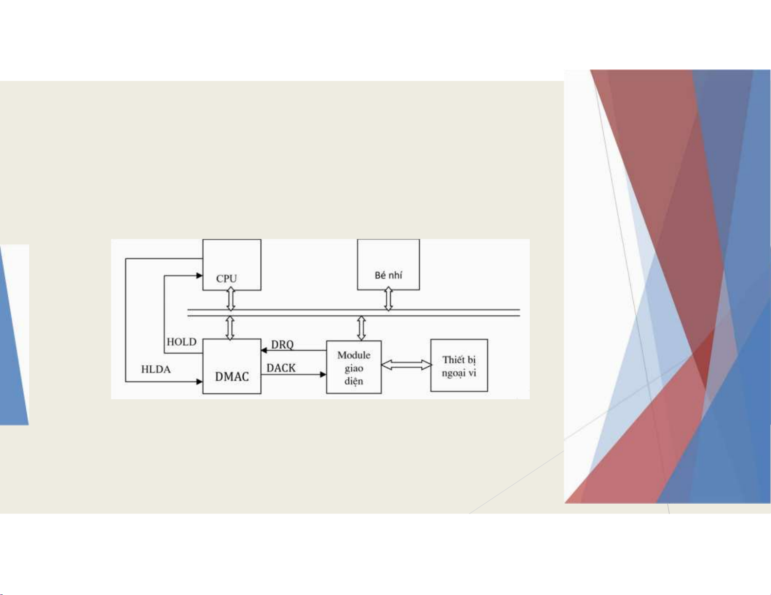 DMAC phát tín hiệu HOLD = 1 cho CPU, òi CPU áp ứng. -