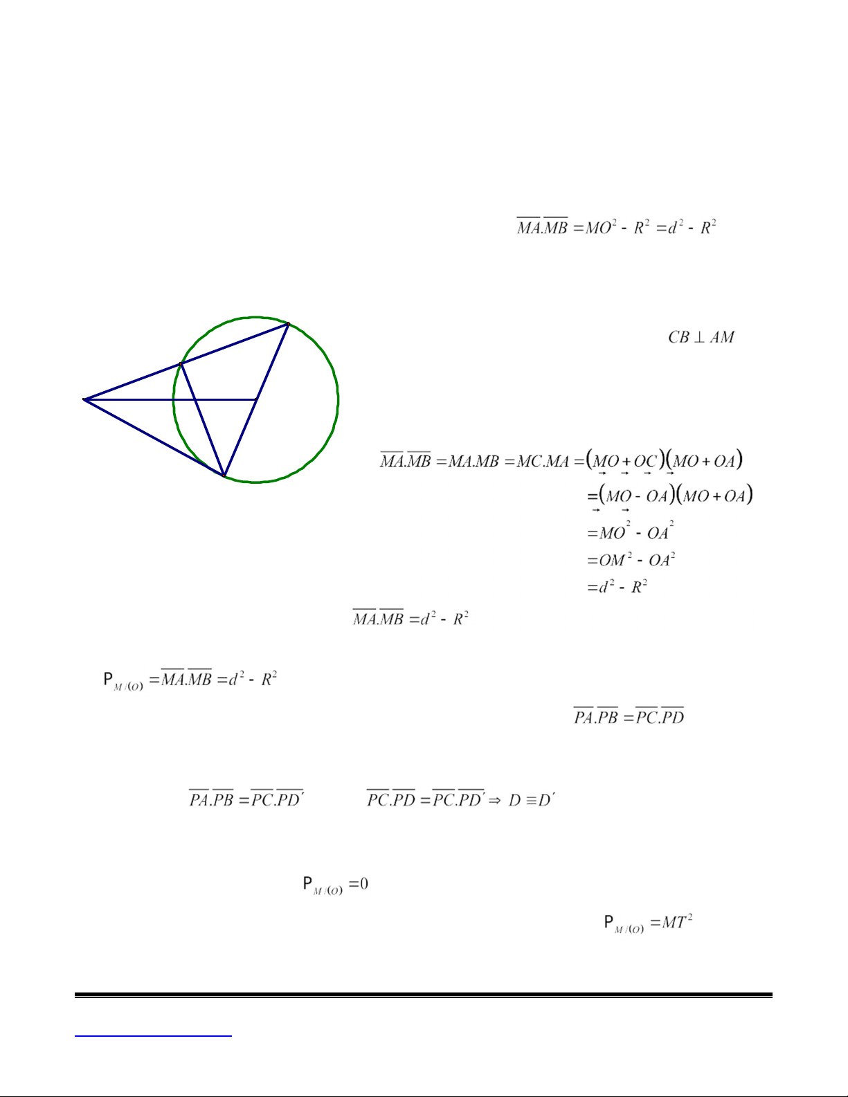 tích của điểm M đối với đường tròn (O) và kí hiệu PM/(O). Ta có: