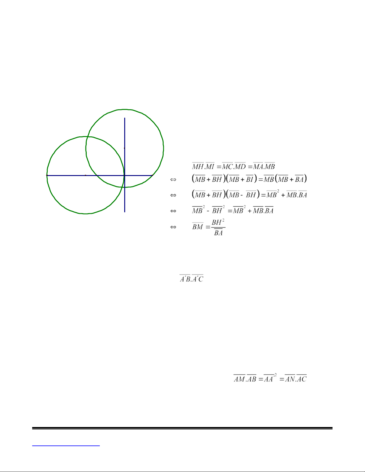 2) Nếu hai đường tròn cắt nhau tại A và B thì AB chính là trục đẳng phương của chúng.
