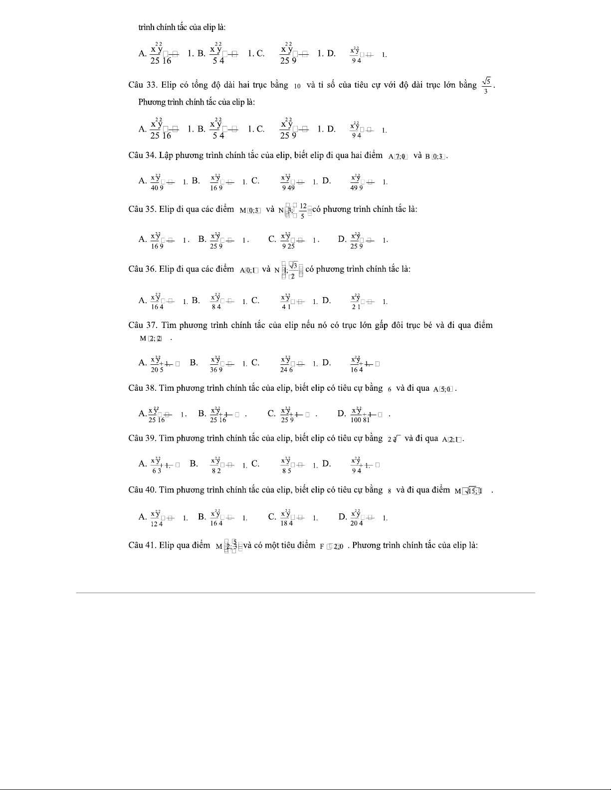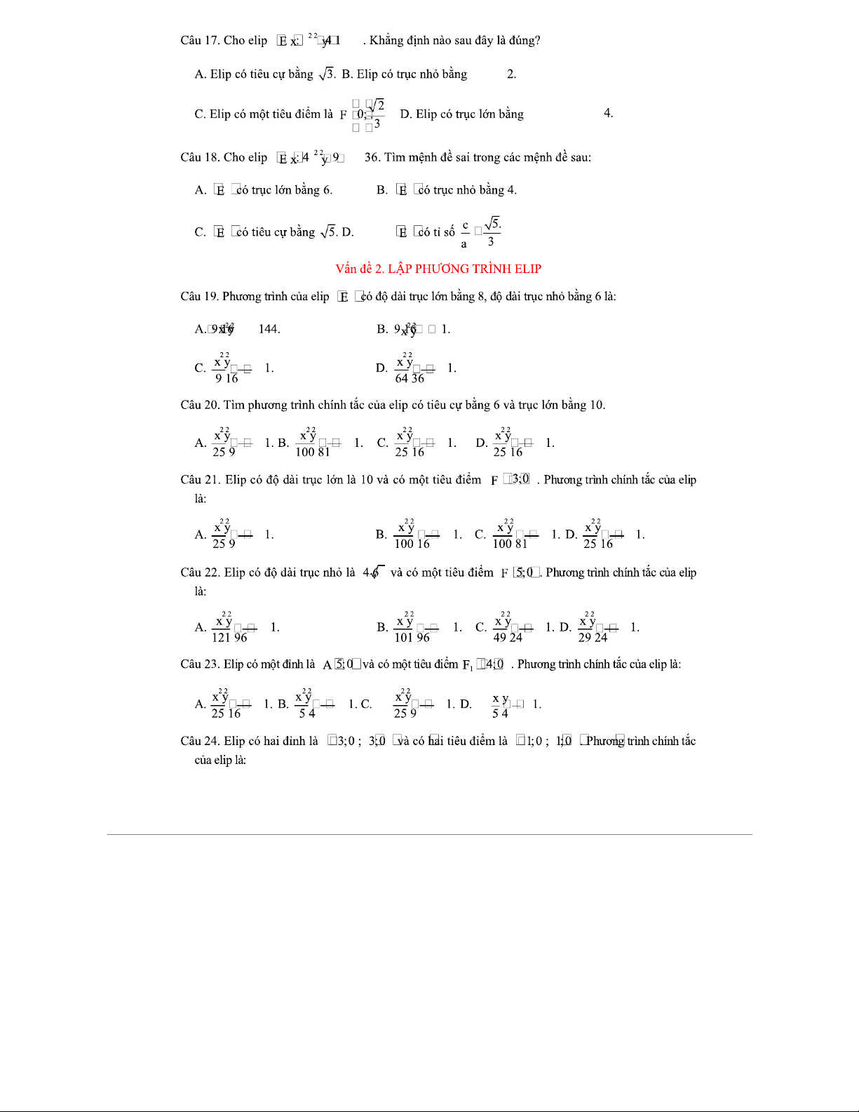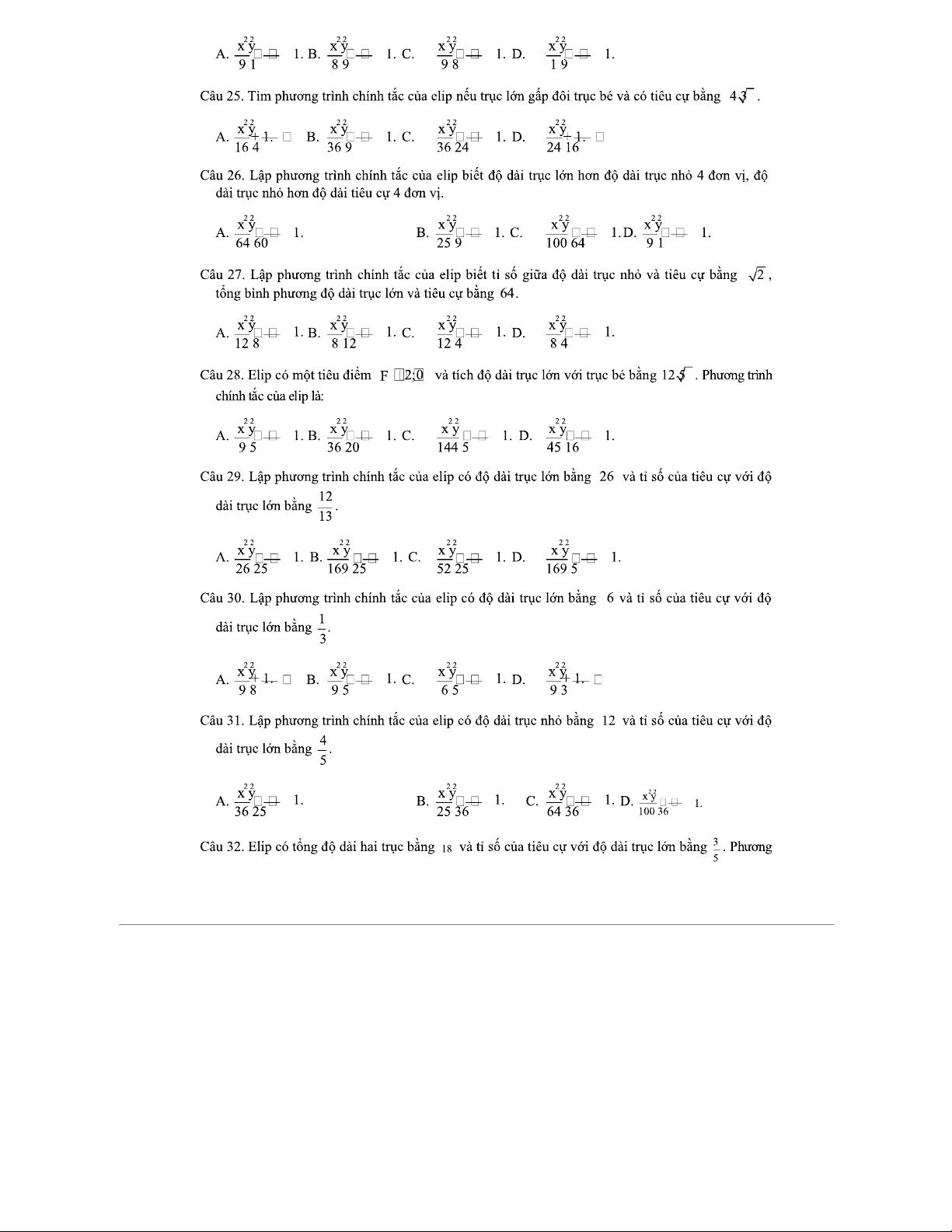 Phương Trình Đường Elip - Tài liệu luyện tập cho môn Toán 2