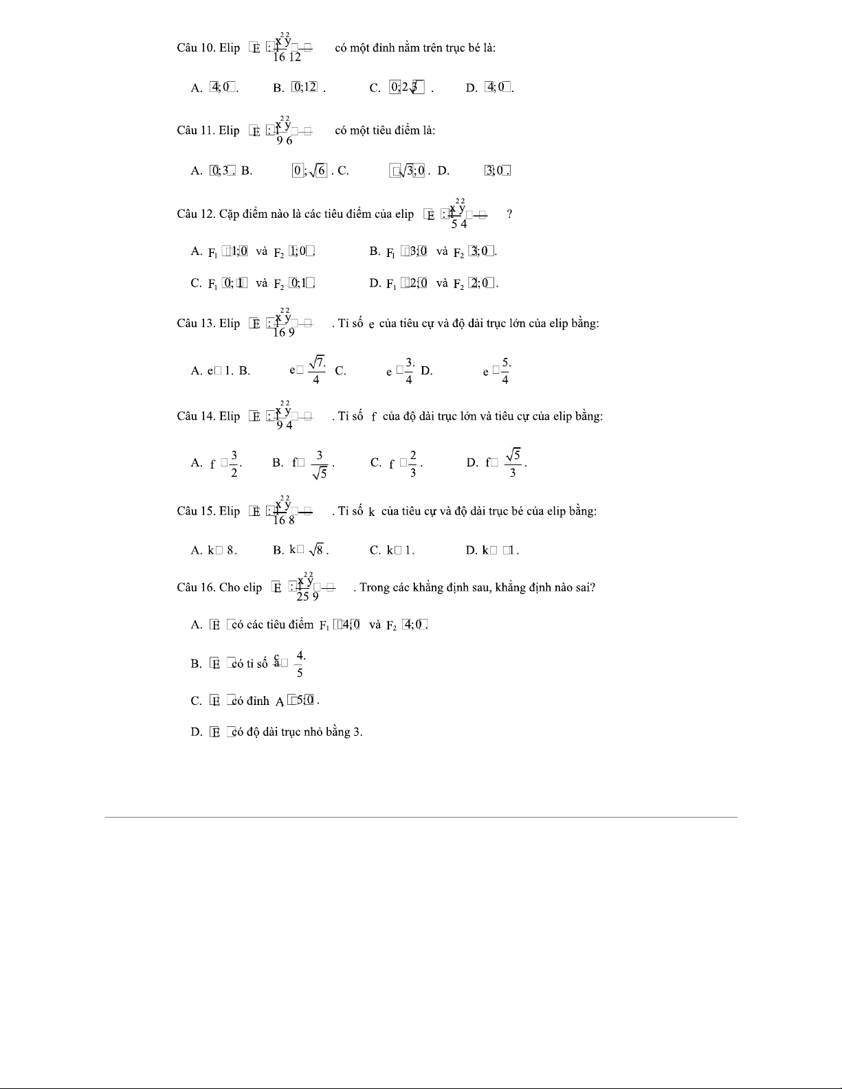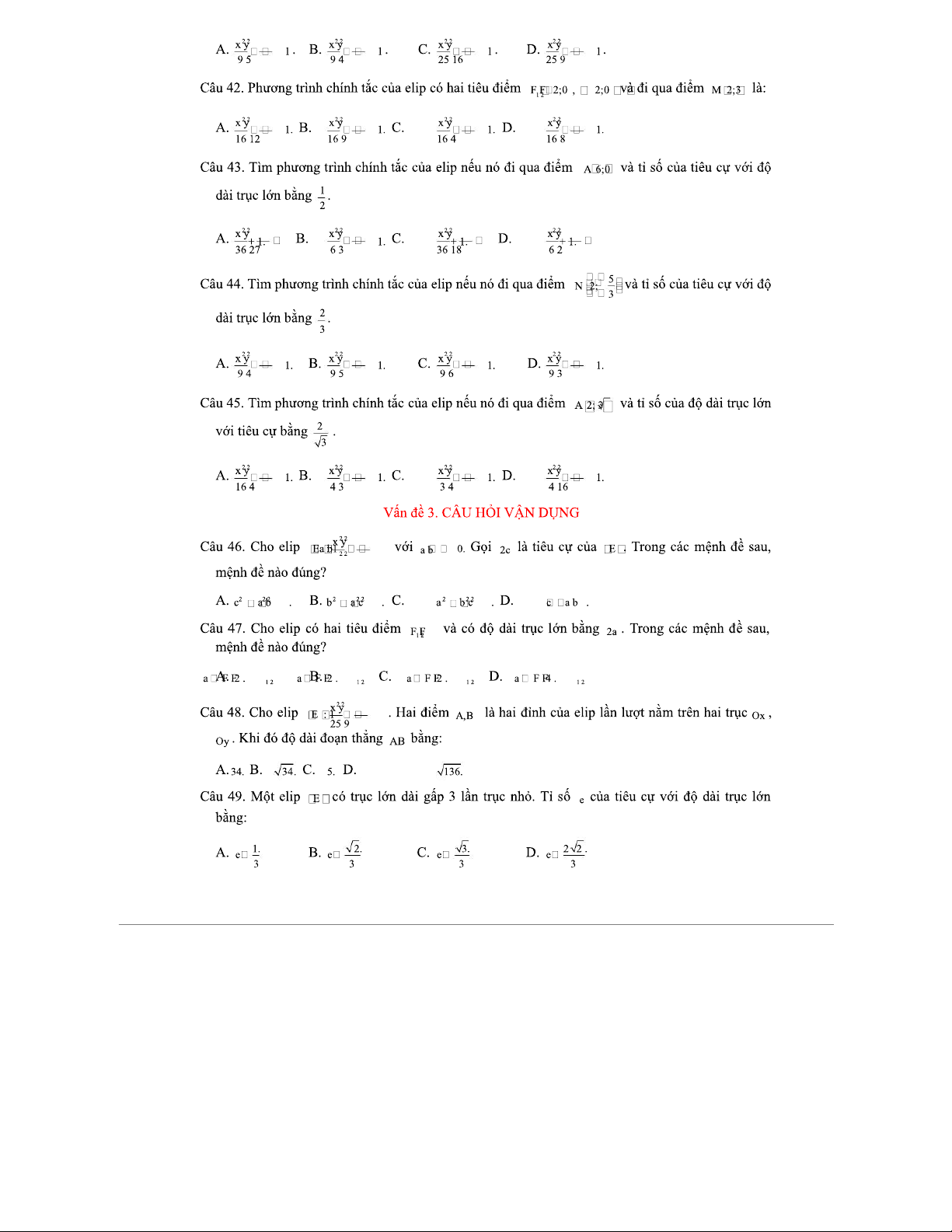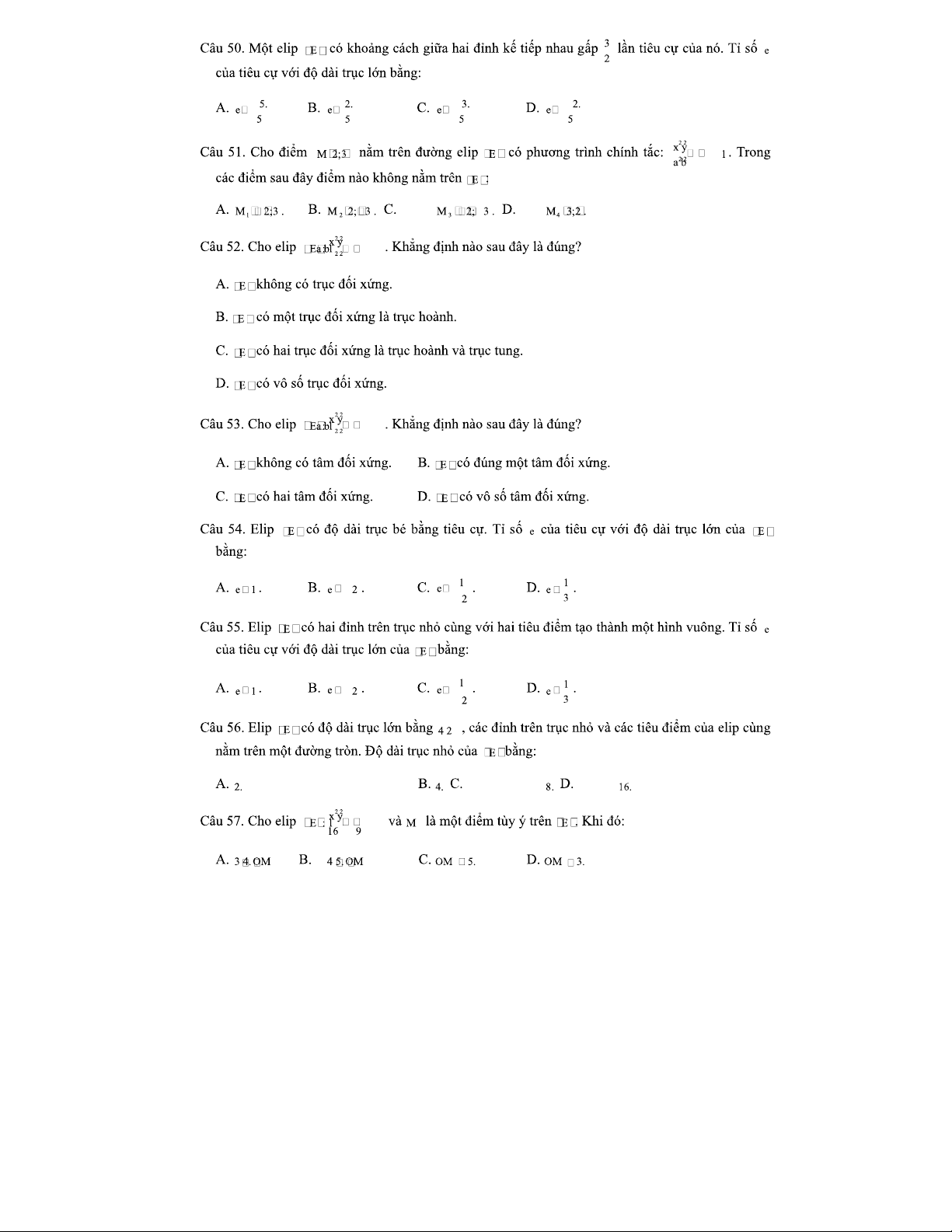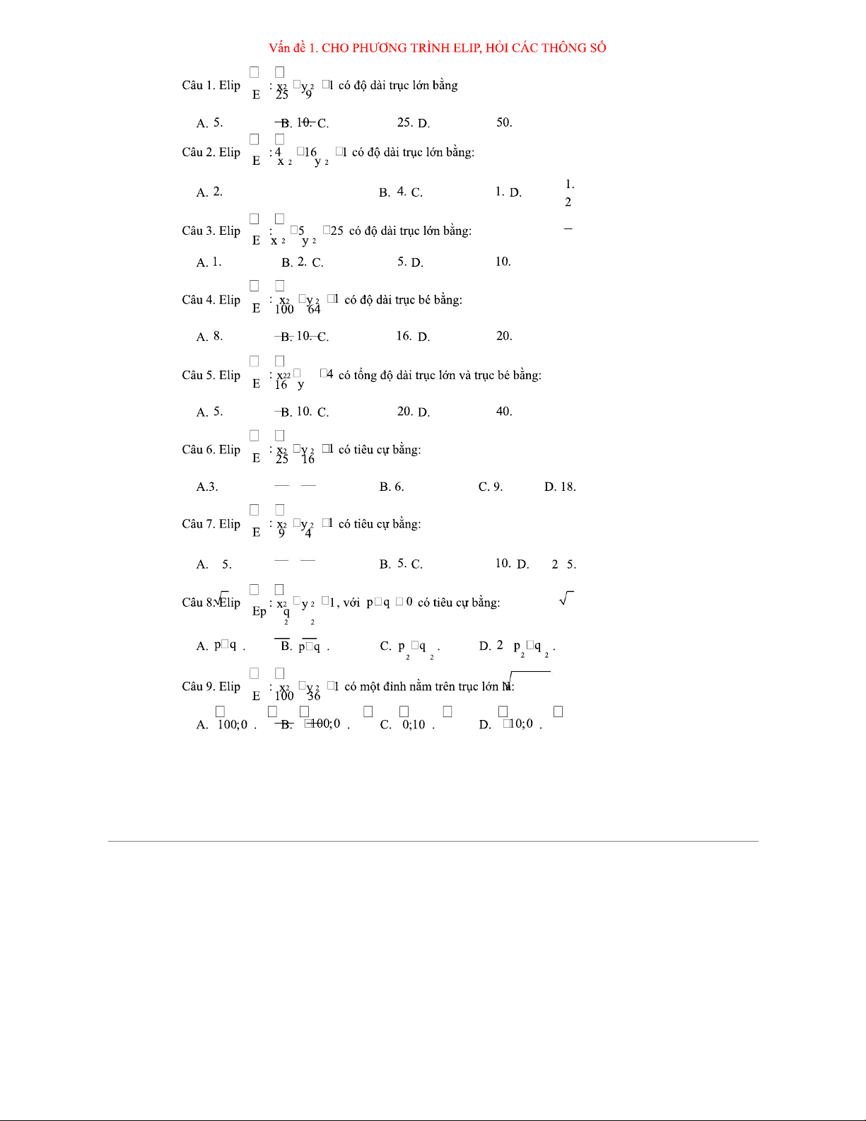 Phương Trình Đường Elip - Tài liệu luyện tập cho môn Toán 2