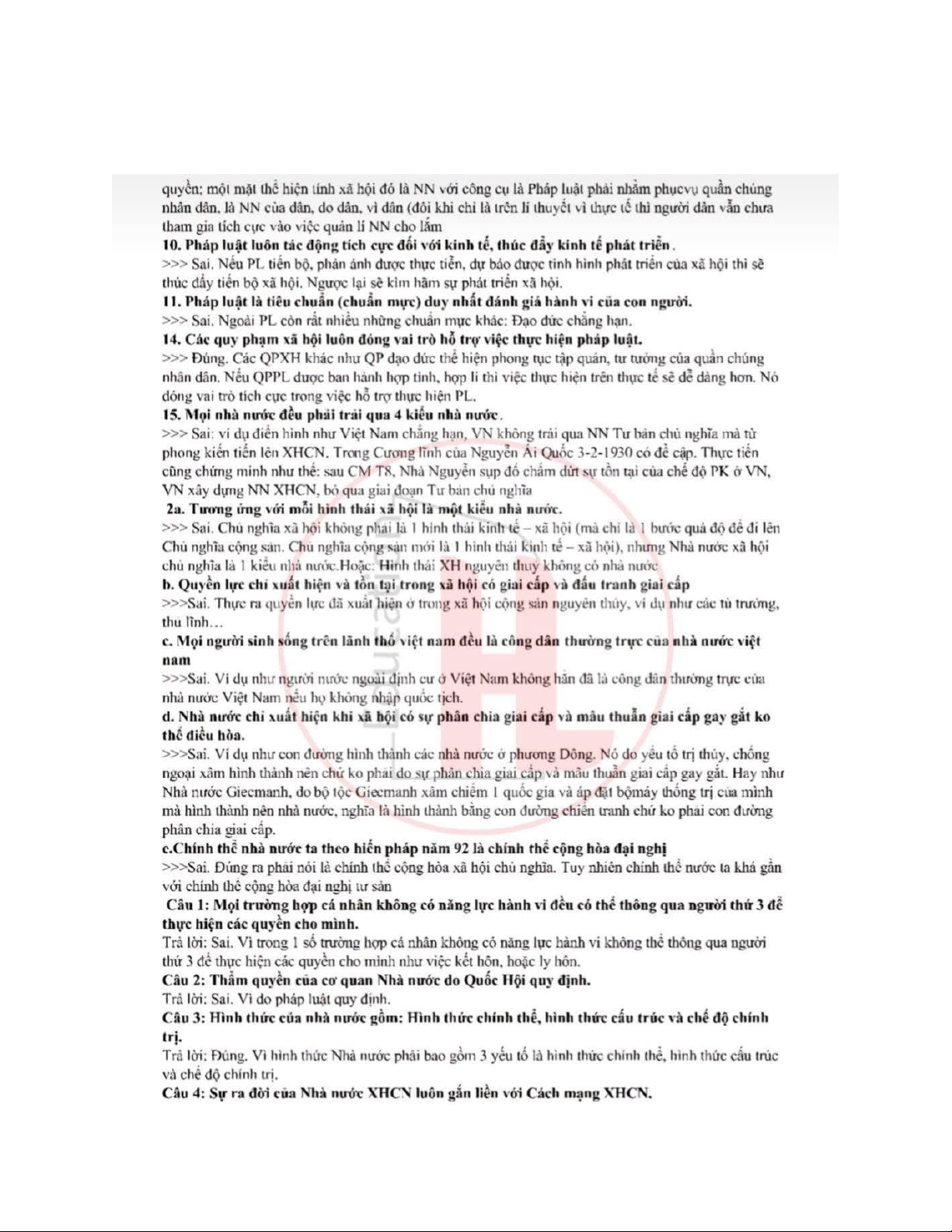 Câu hỏi ôn tập môn Lí luận nhà nước và pháp luật - Pháp luật đại cương | Trường Đại học Ngân hàng Thành phố Hồ Chí Minh