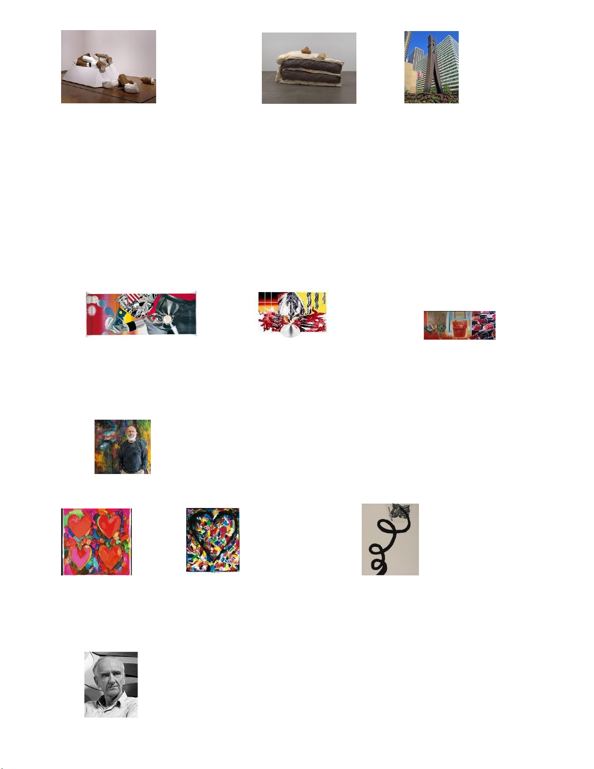 không gian hóa hội họa, đã nâng các đổ vật tầm thường trong cuộc sống lên lầm cao nghệ thuật. Monogram (1959) Sleep for Yvonne (1965) Storyline I (1968) Claes Oldenburg - 1929
