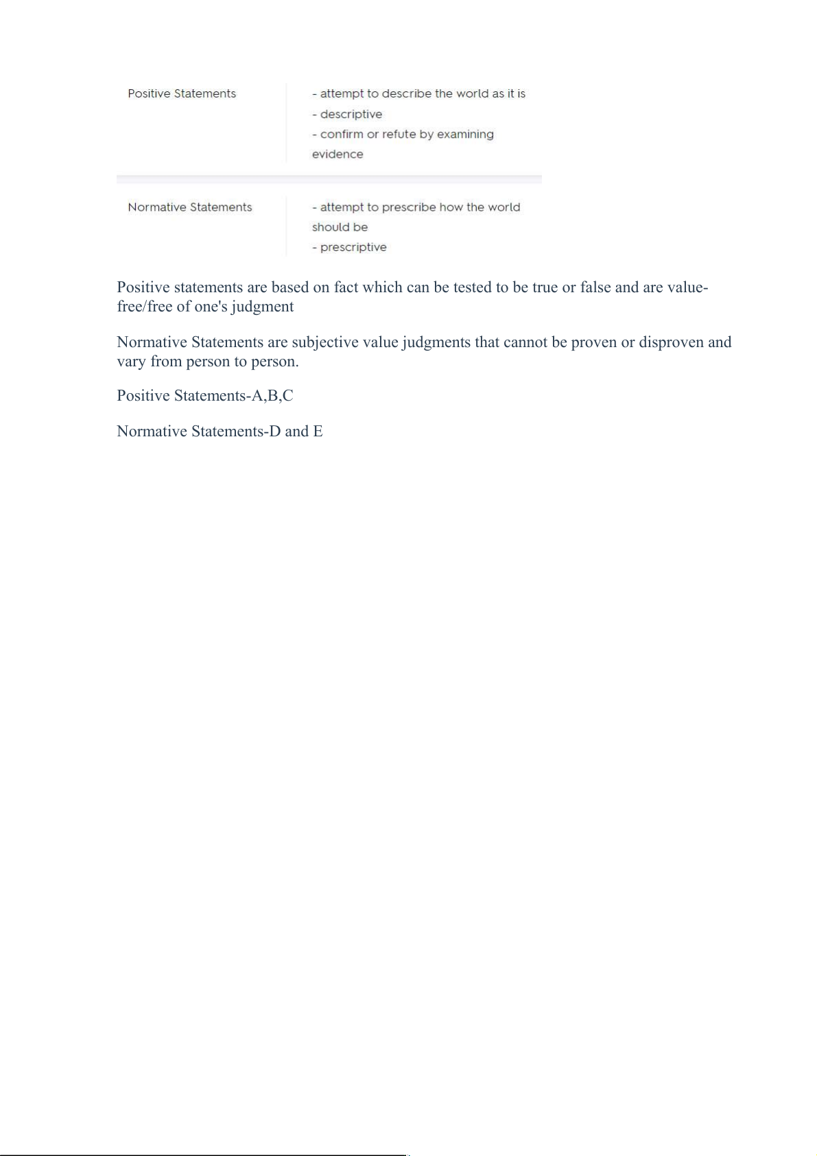 Normative Statements are subjective value judgments that cannot be proven or disproven and vary from person to person. Positive Statements-A,B,C Normative Statements-D and E Chapter 4