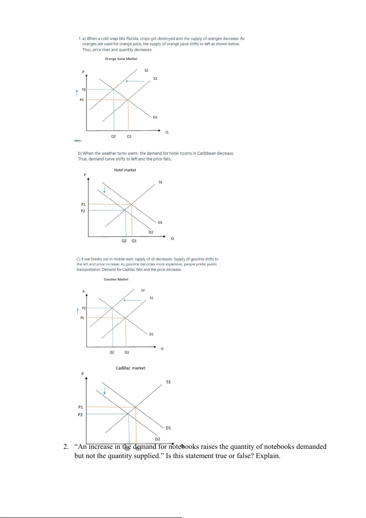 1. Explain each of the following statements using supply-and-demand diagrams.