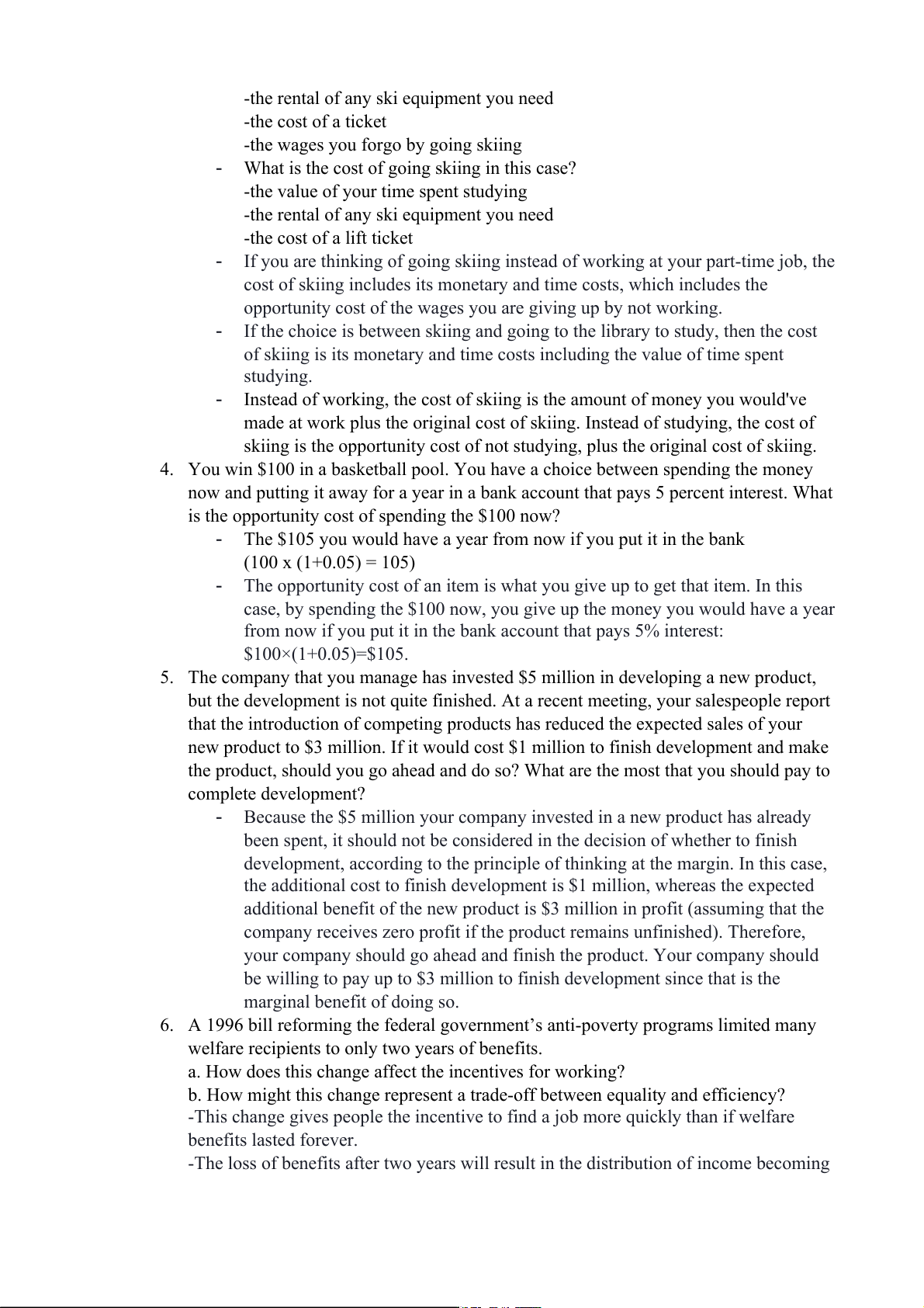 made at work plus the original cost of skiing. Instead of studying, the cost of