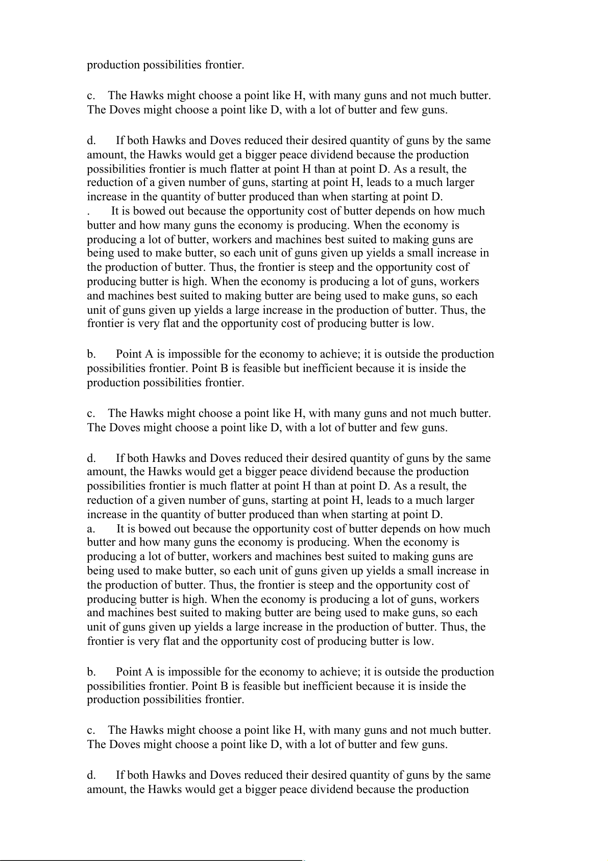 Hawks would get a bigger peace dividend because the production possibilities frontier is