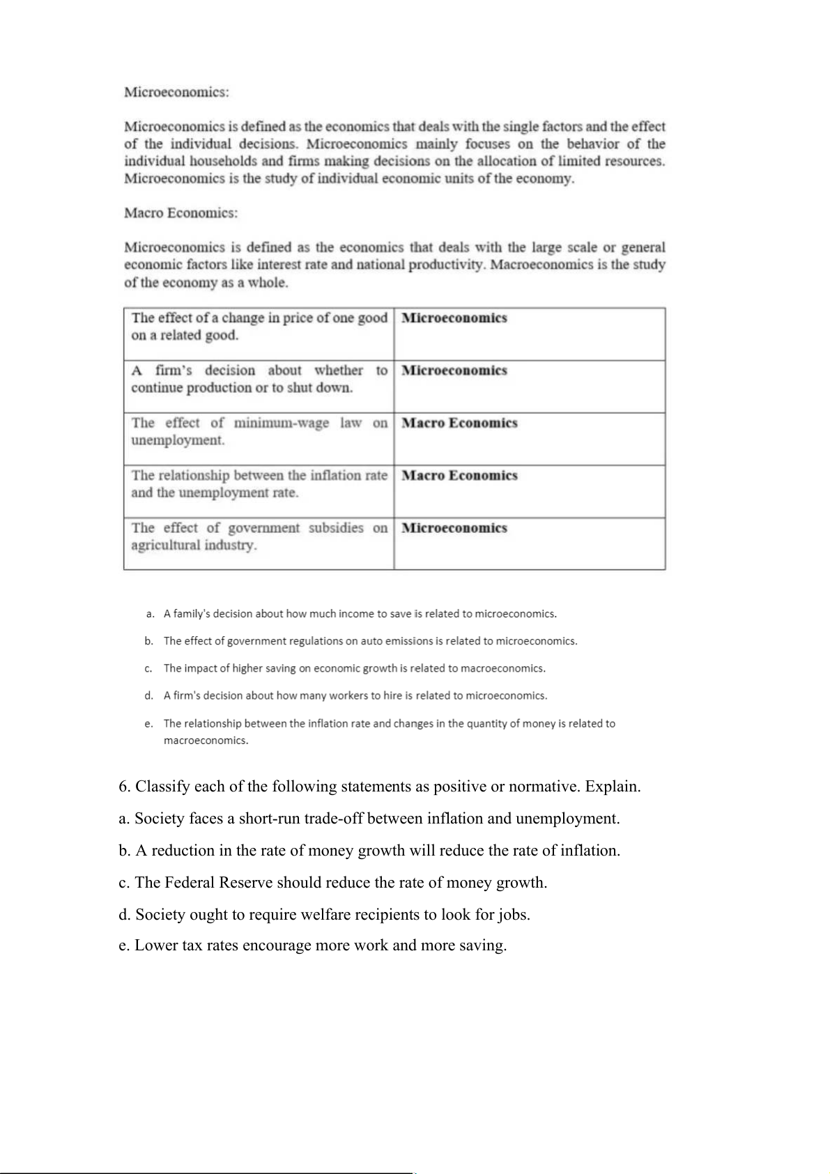 5. Classify the following topics as relating to microeconomics or macroeconomics.